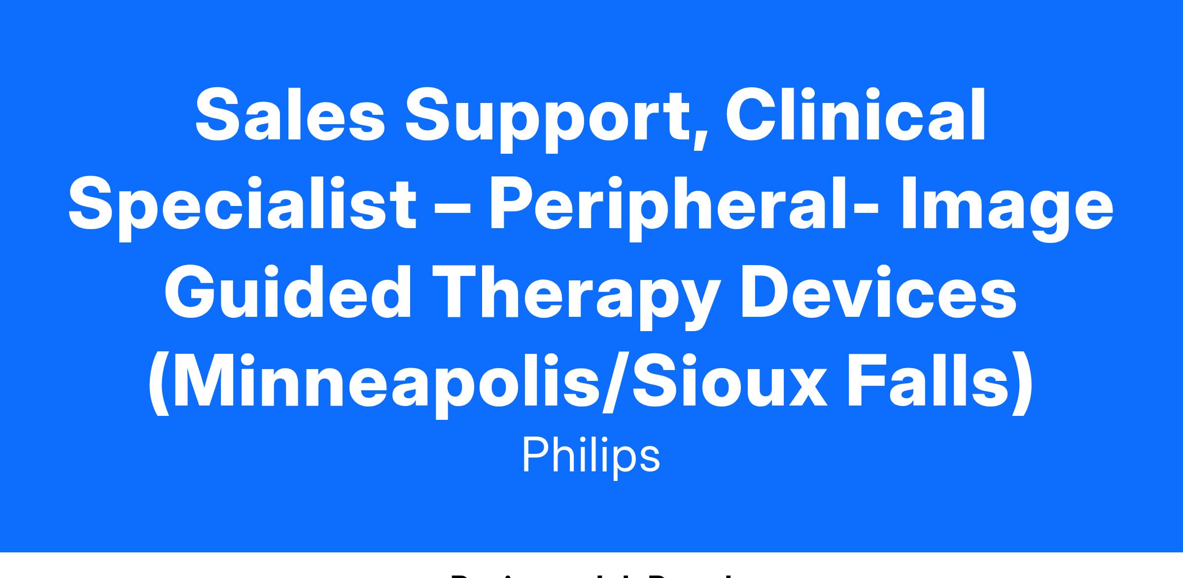 Sales Support, Clinical Specialist – Peripheral- Image Guided Therapy Devices (Minneapolis/Sioux Falls)