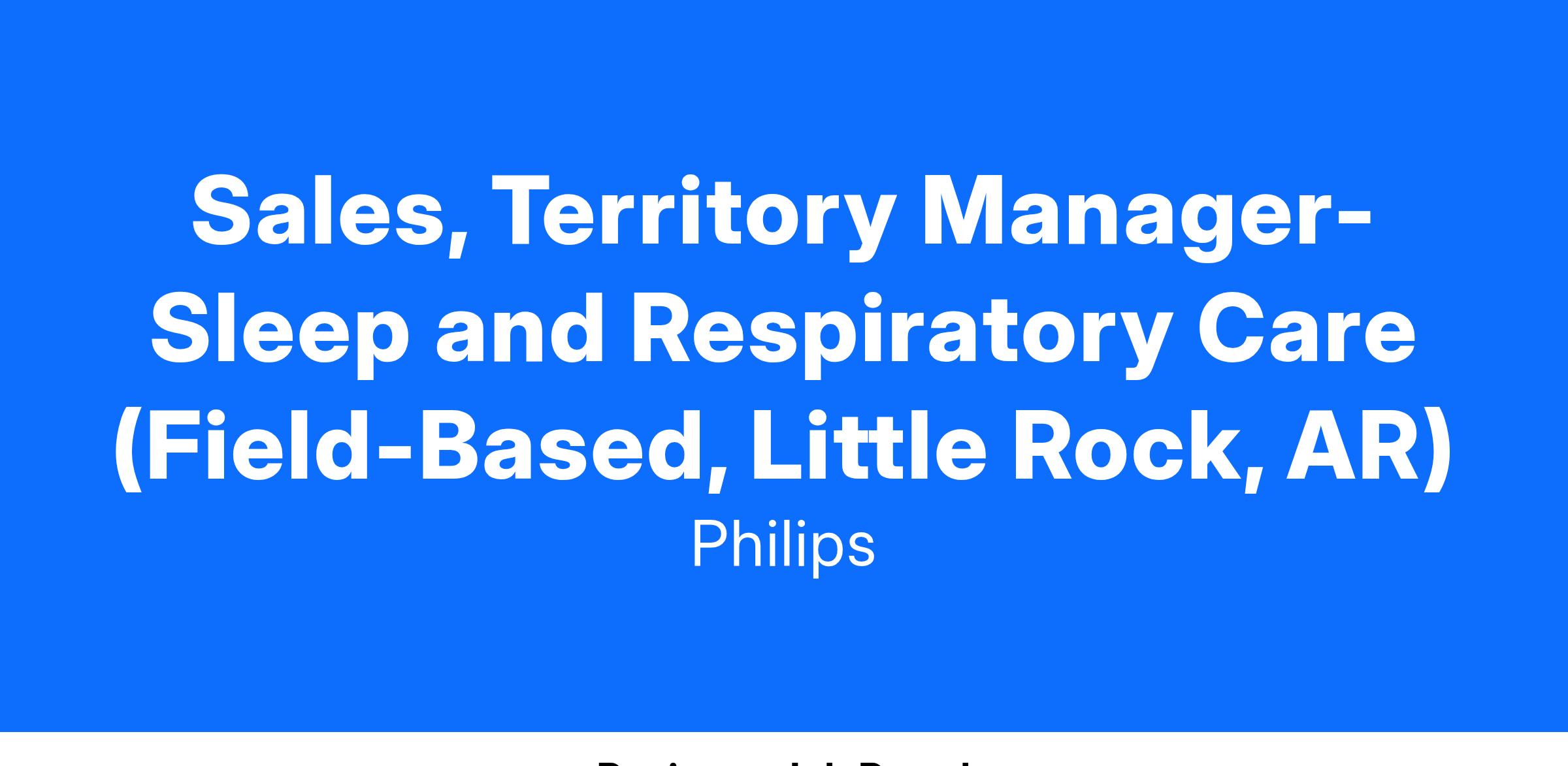 Be an integral part of the dynamic Philips Sleep & Respiratory Care (SRC) team as an experienced Territory Manager. Reporting to the Regional Sales Director, this position offers you the opportunity to play a vital role in increasing market penetration and drive the growth of Philips SRC Patient Interface products and services within the Little Rock Territory.