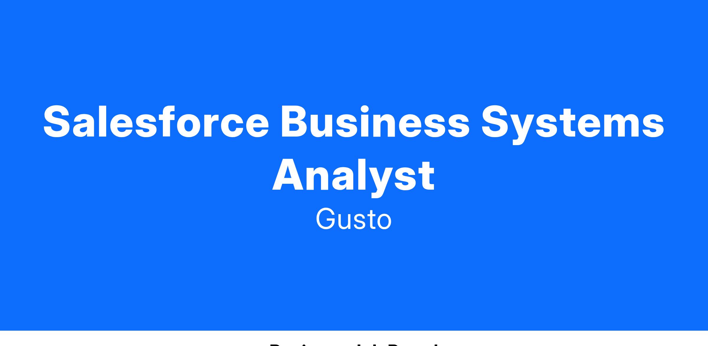 This role requires close collaboration with Gusto’s Revenue leadership teams to scale and optimize Gusto’s Salesforce instance. The Senior Salesforce Business Analyst will analyze business processes and data to identify opportunities for improving the customer experience and supporting Gusto’s operational excellence.