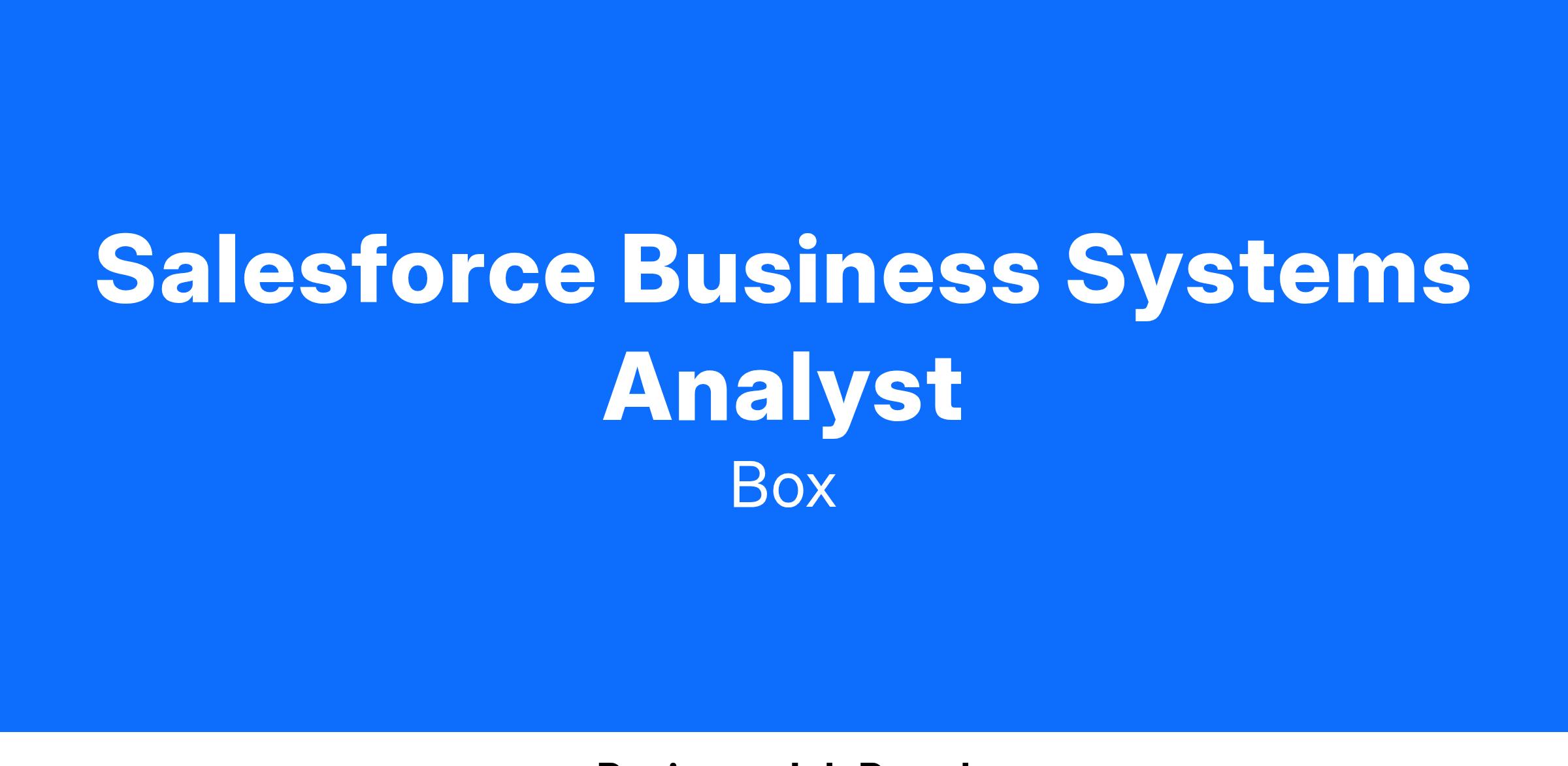 Box is looking for a Business Systems Analyst to join our Enterprise Systems team to help manage and scale our Sales and go-to-market tech stack. In this role, you will be working with business leaders and collaborating with our Enterprise Systems team by utilizing your technical expertise and business insights. You will also be working closely with our Goto Market Operations team to plan, design and build optimal solutions for our backend office systems and applications. We are seeking candidates with strong analytical, communication, and problem-solving skills who can effectively collaborate with individuals at all levels of the organization.