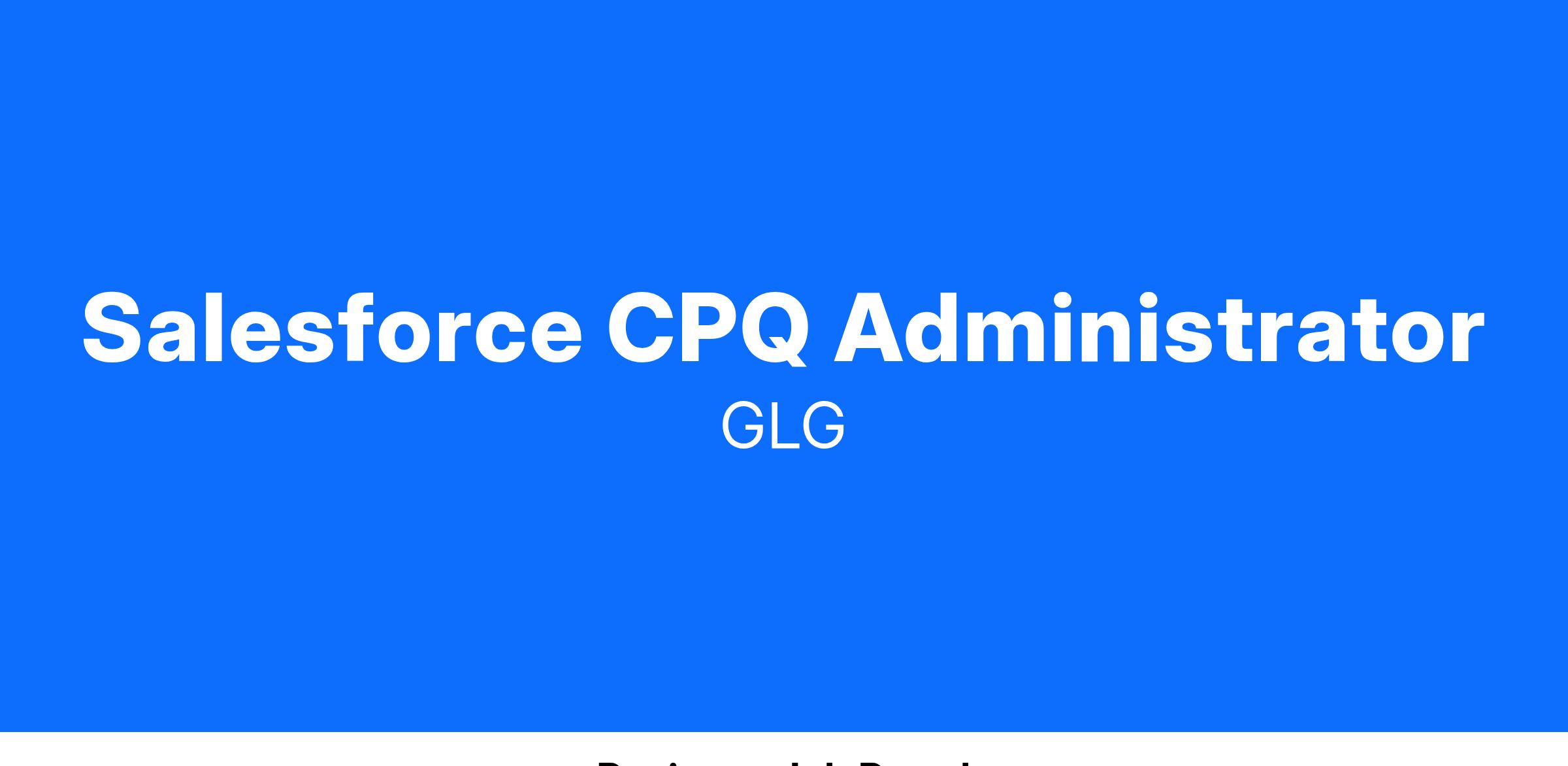 GLG is seeking a highly skilled and experienced Salesforce CPQ ( RevCloud ) Administrator with expertise in CPQ processes, on our SFDC Lightning Sales Cloud Org.The successful candidate will play a key role in managing and optimizing our Salesforce RevCloud platform, particularly focusing on QTC function and process. As the RevCloud Administrator, you will be responsible for configuring, customizing, and maintaining the CPQ / RevCloud ecosystem to streamline sales processes, enhance user experience, shorten deal cycles and ensure data accuracy to improve and maintain revenue capturing activities. This role will report to the VP of Sales Technology, within the CIO organization.