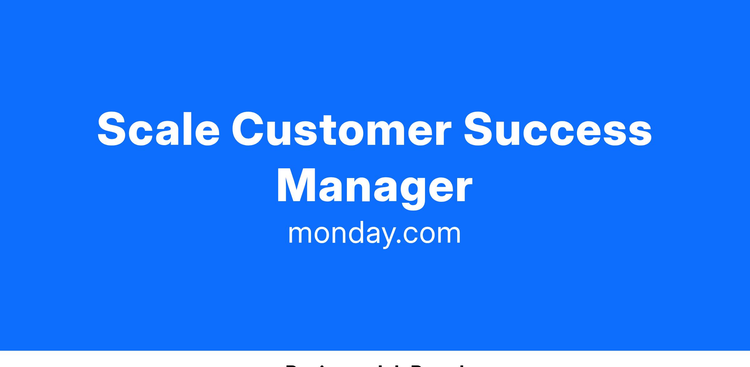 The Scale CSM is an exciting role at monday.com. Scale CSM’s work with customers either in 1:1 engagements for high-impact objectives or by running 1:many success programs to impact target customer groups. We use robust customer data to help identify ways we can deliver increased value through broader and more mature use of monday.com.