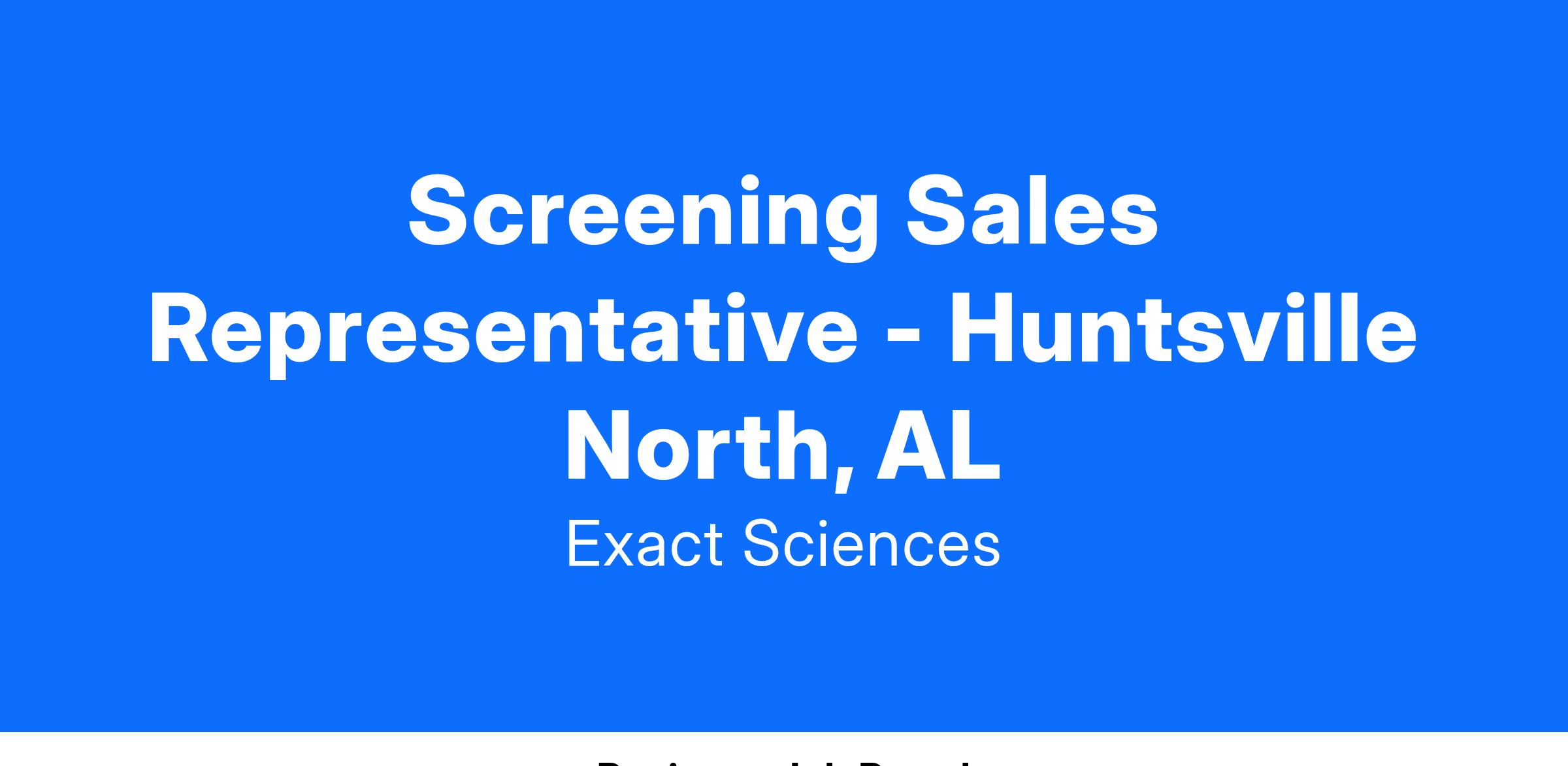At Exact Sciences, we are cancer fighters. We are united by our mission to change lives by providing earlier, smarter answers. Through advances in cancer detection and treatment guidance, we will help eradicate the disease and the suffering it causes. A Screening Solutions Specialist (SSS) is a front-line position in the fight against cancer. The SSS will drive product growth of Cologuard in medical practices to meet sales goals within the assigned geography and deliver diagnostic solutions by establishing the importance of Colorectal Cancer (CRC) diseases and screening.