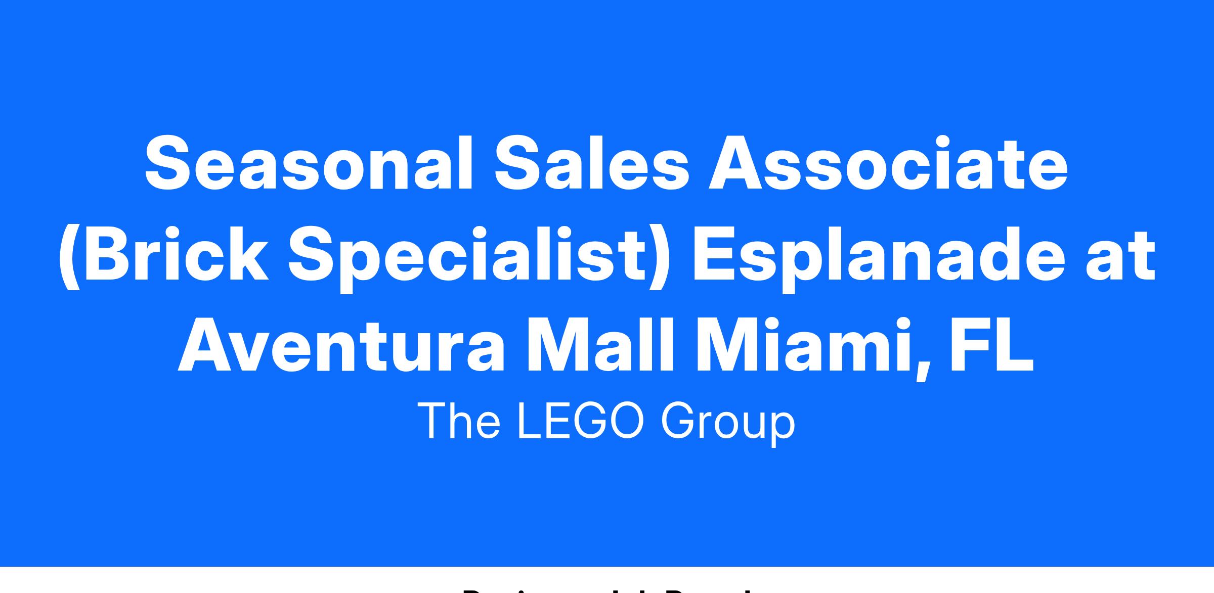 Join the LEGO® Brand Retail team as a Seasonal “Brick Specialist” and provide inspirational guest experiences in an interactive and vibrant store environment. We are looking for energetic, enthusiastic individuals to join us on a seasonal, part-time basis.
