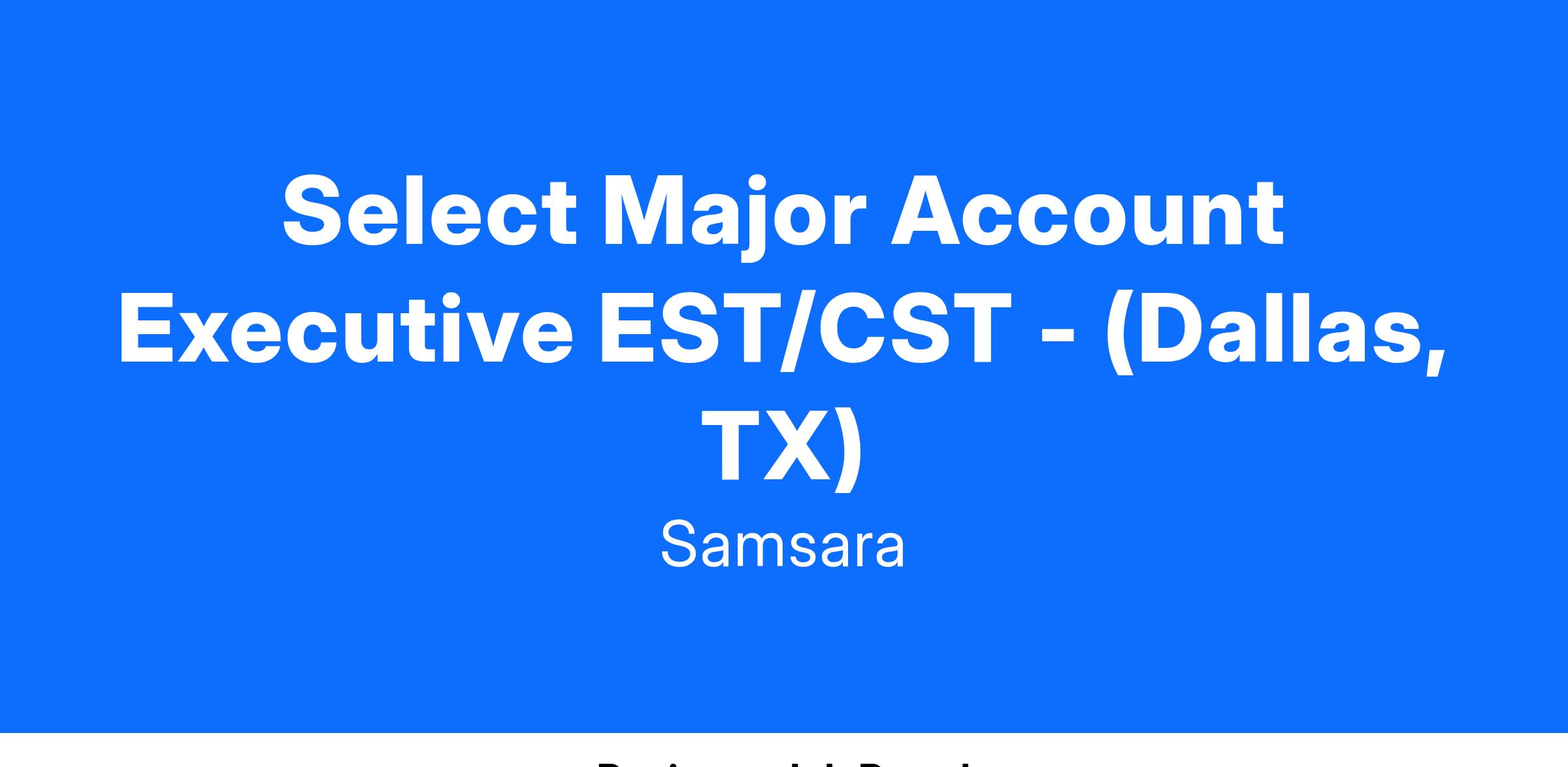 Select Major Account Executive EST/CST - (Dallas, TX)