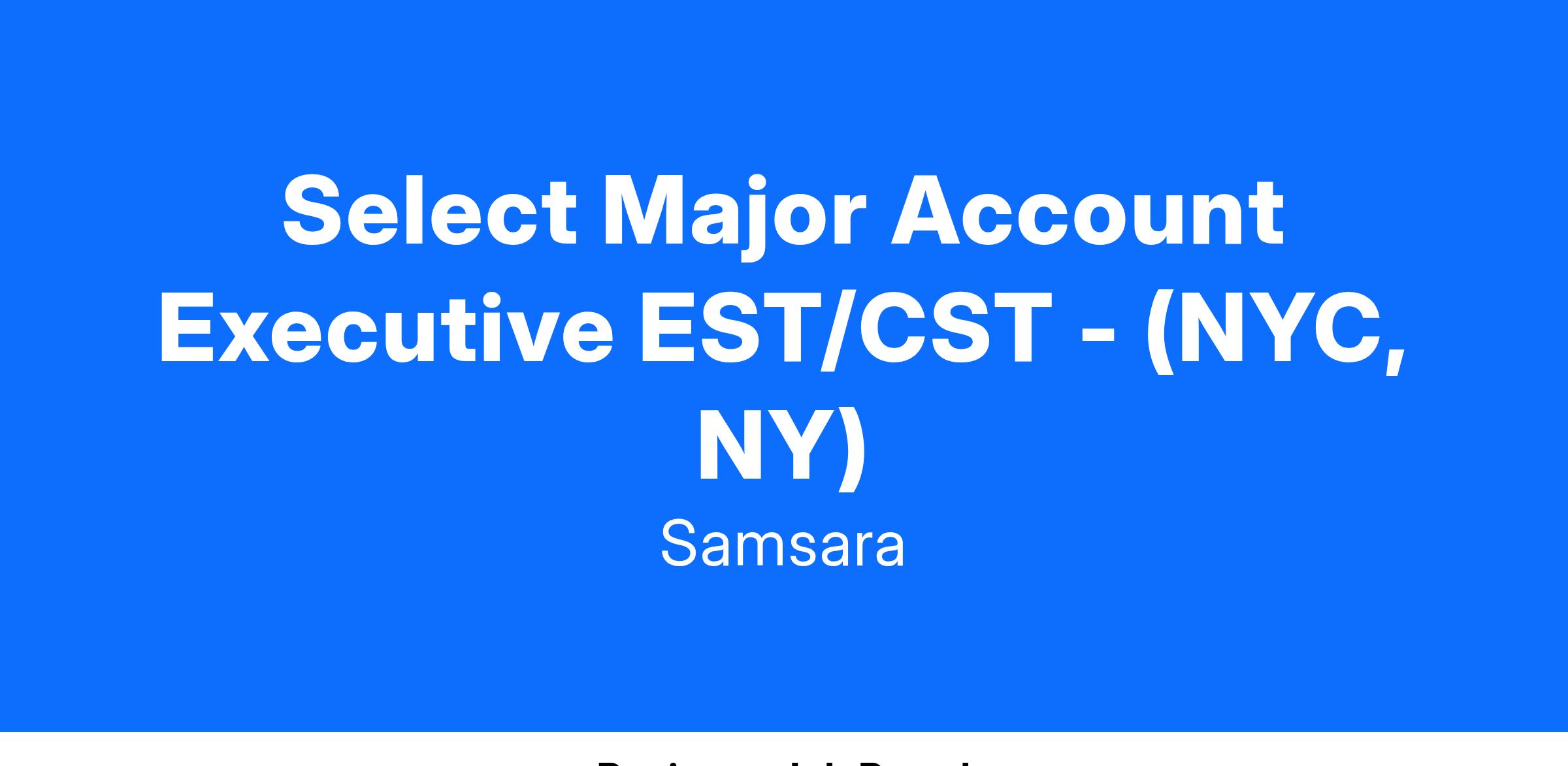 Select Major Account Executive EST/CST - (NYC, NY)
