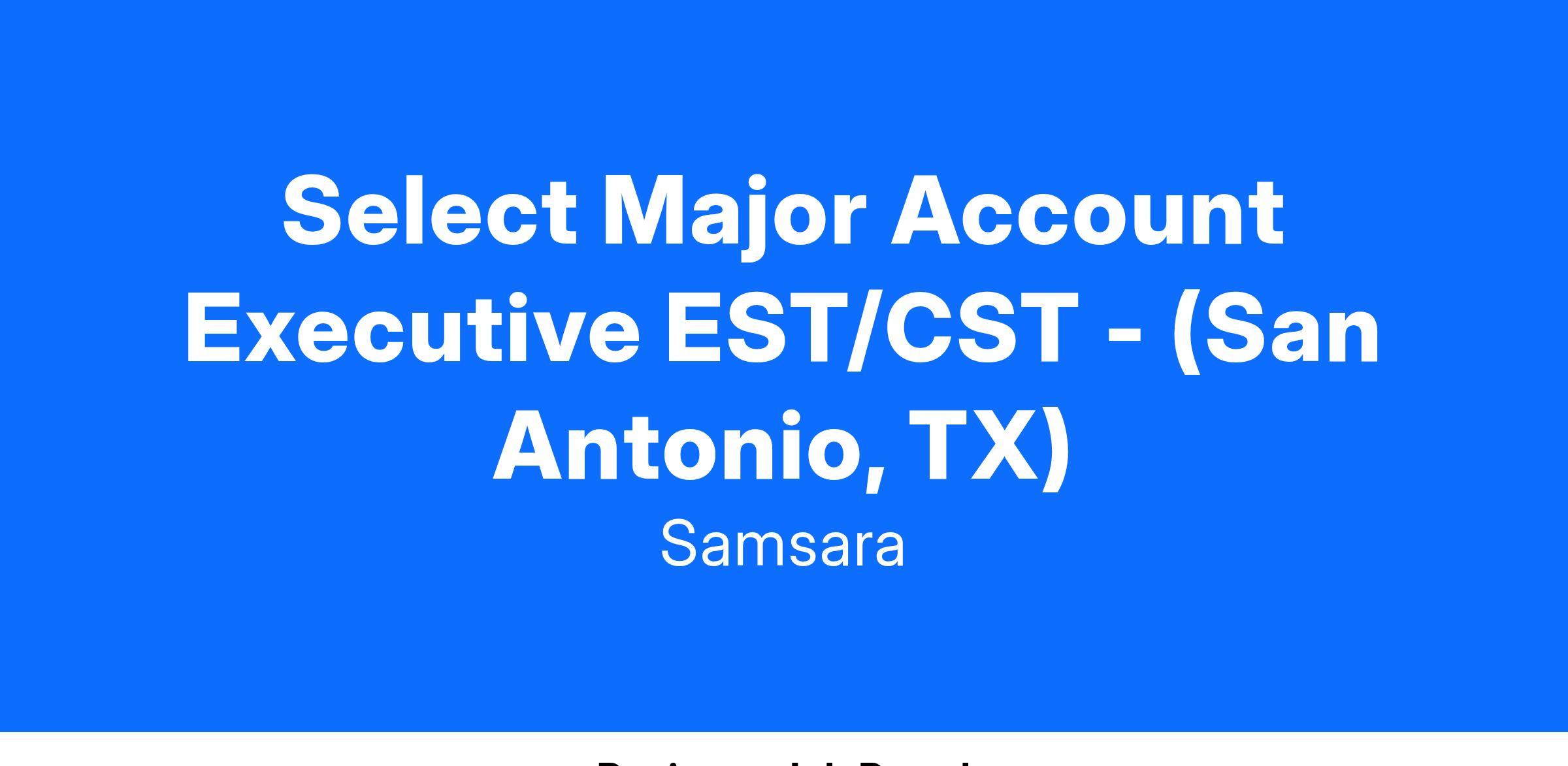 Select Major Account Executive EST/CST - (San Antonio, TX)