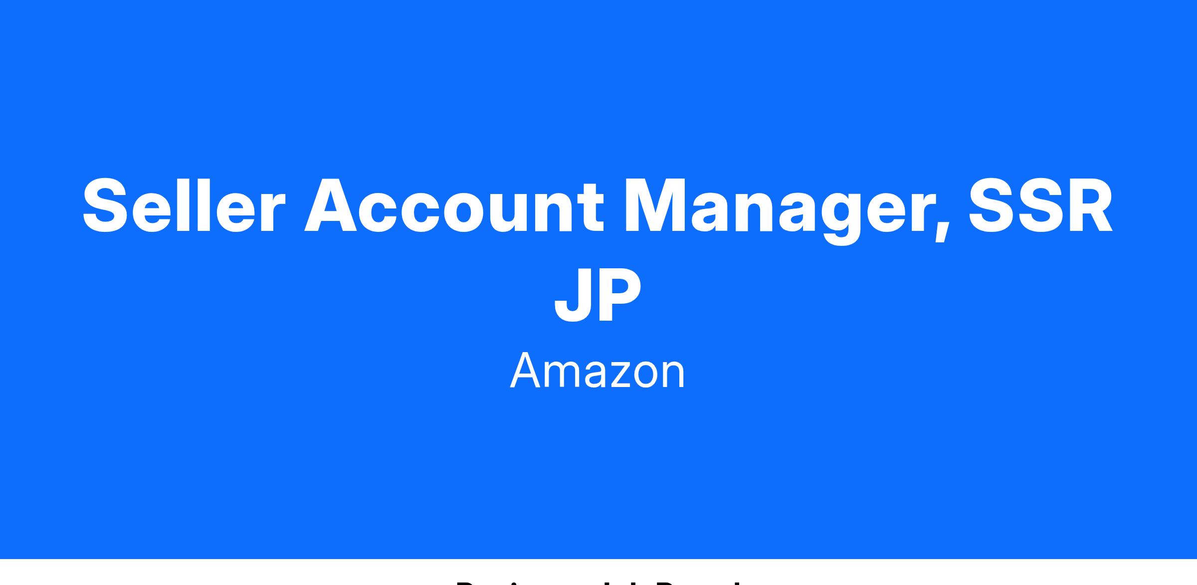 Seller Account Manager, SSR JP