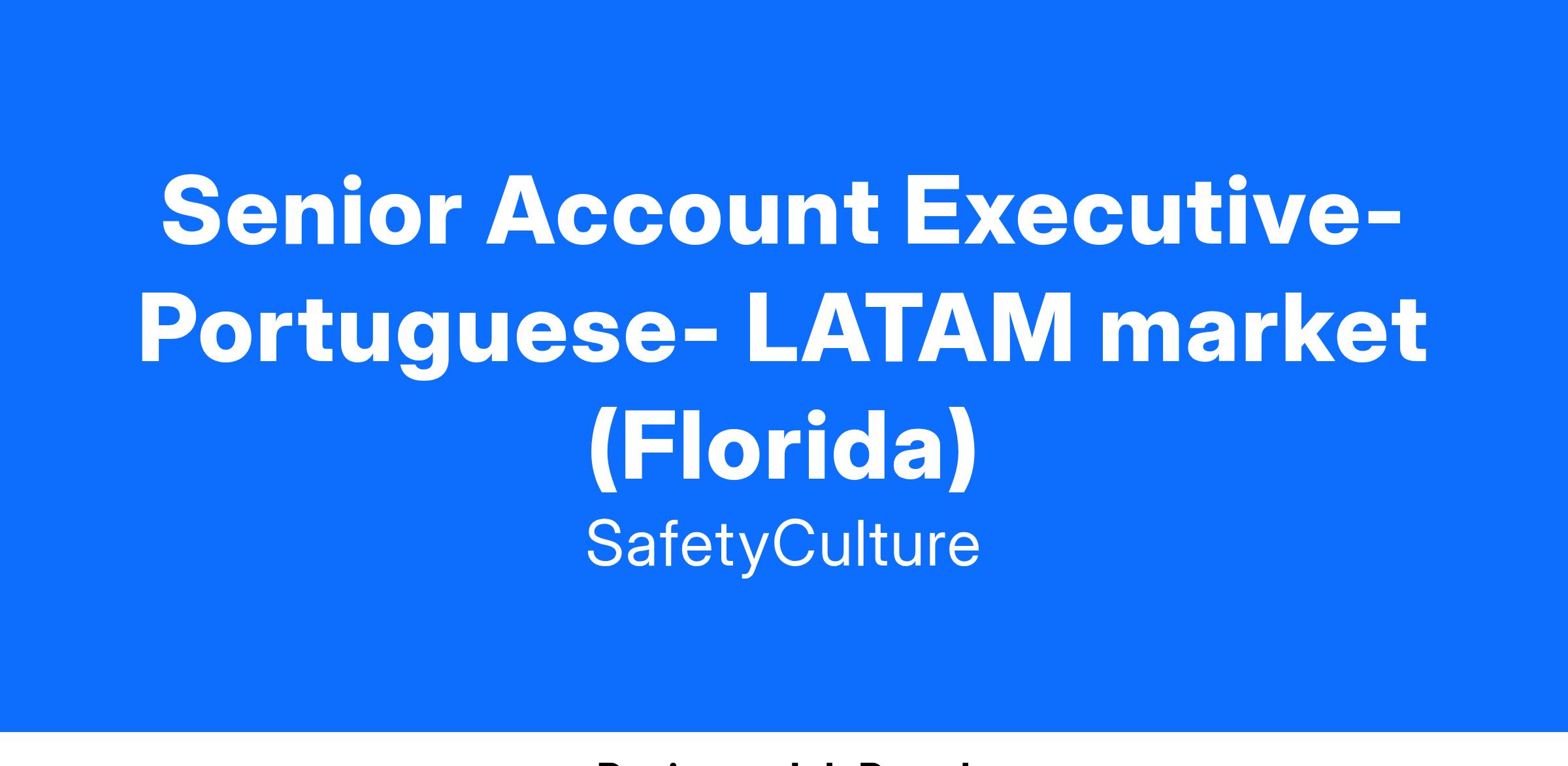 As a Senior Account Executive of LATAM Market, you have an exciting opportunity to help us grow and develop a key emerging market for us. Critical to the success of this role, you will partner closely with cross-functional global teams, in particular our AMER team, as you help us scale a world class global GTM business. This role will initially be remote, based in Miami, Florida.