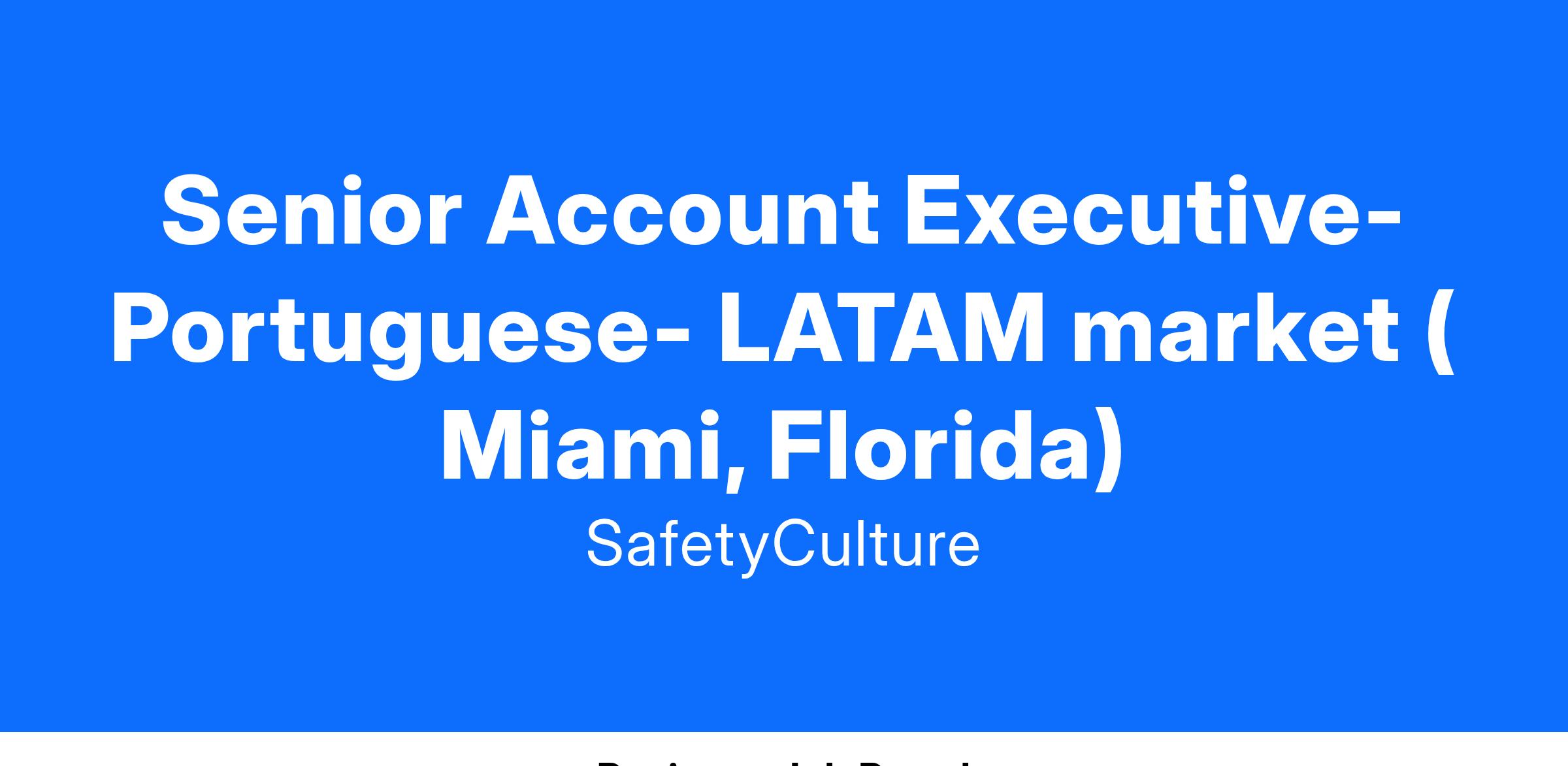 As a Senior Account Executive of LATAM Market, you have an exciting opportunity to help us grow and develop a key emerging market for us. Critical to the success of this role, you will partner closely with cross-functional global teams, in particular our AMER team, as you help us scale a world class global GTM business. This role will initially be remote, based in Miami, Florida.