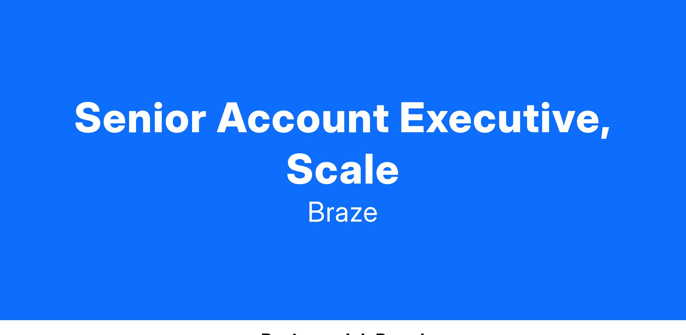 As an Account Executive on our Scale team, you will own the full sales cycle from prospecting to closing, working as a relentless “hunter” to identify, prioritize, outreach to and ultimately close new business. Additionally, you will have the opportunity to work side-by-side with several Braze customers, operating as a trusted advisor as they look to Braze to grow and scale their business.