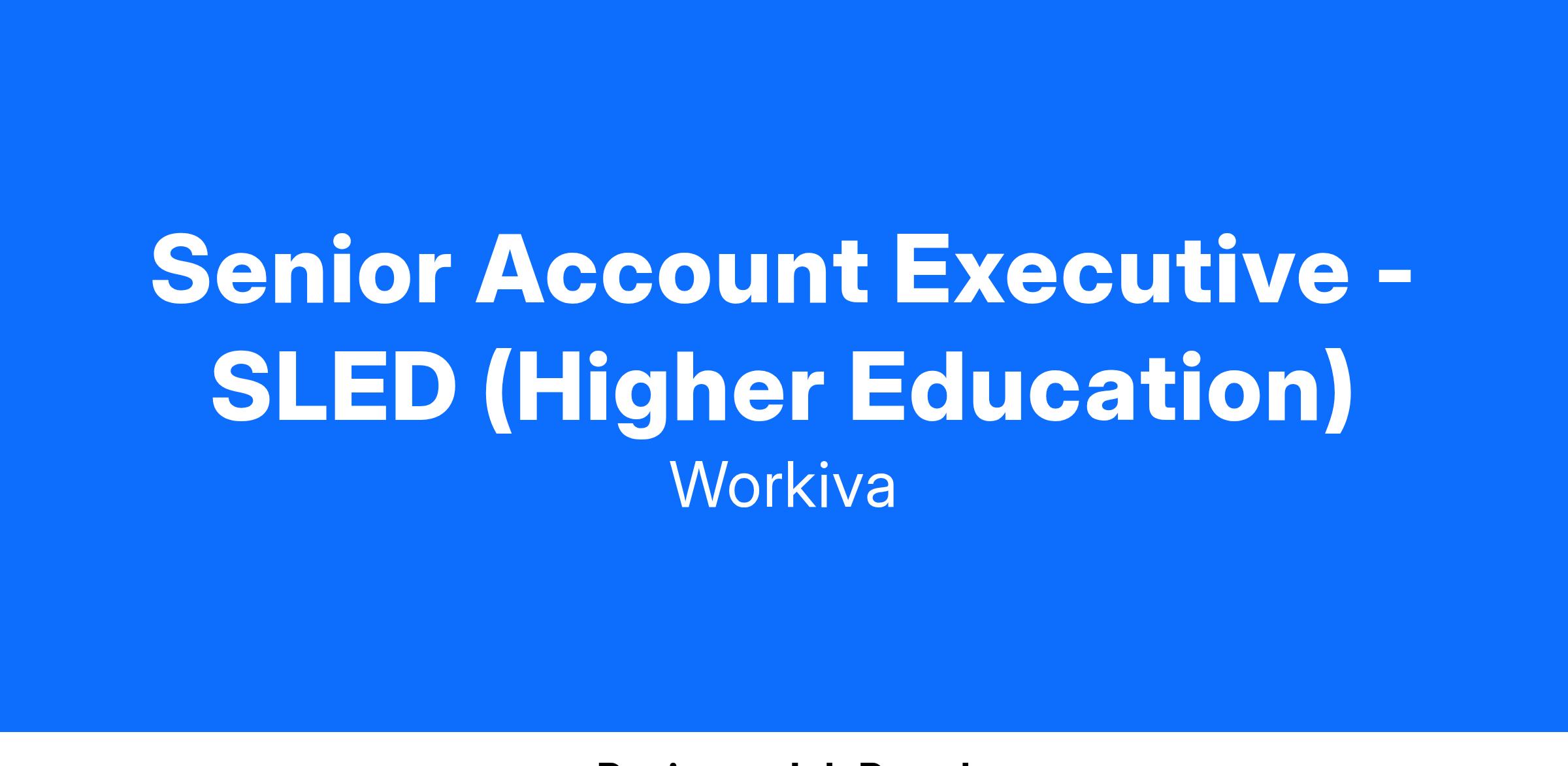 The Senior Account Executive - SLED (Higher Education) is responsible for obtaining new business and customer expansion sales opportunities from executive-level buyers and influencers with our Higher Education customers. Account Executives are focused on selling Workiva’s core platform and collaborate with Workiva Solution Sales teams to deliver multi-solution sales. Successful candidates will build relationships and identify Workiva products and solutions that meet customer needs to drive customer acquisition within an assigned territory. Sales growth is attained through new customer subscriptions, professional services, delivery and training.