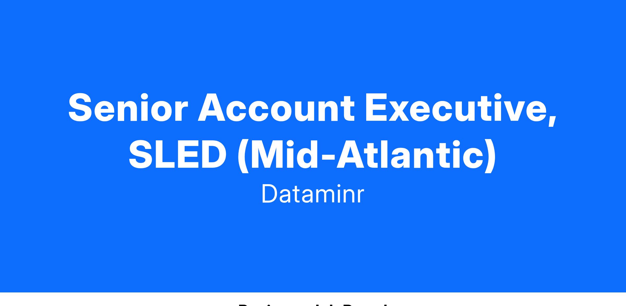Dataminr is seeking a Senior Account Executive to sell our Cybersecurity & Physical Security solutions to high-profile US SLED accounts and ensure that Dataminr’s critical news alerts are getting into the right hands at the right time. You'll deliver unique and impactful solutions to your SLED clients while exceeding quotas and establishing strong customer relationships.At Dataminr, we are over 600 talented individuals, spanning seven global offices, united by our passion to use AI for the greater good and be agents of positive change in our company and in our communities.