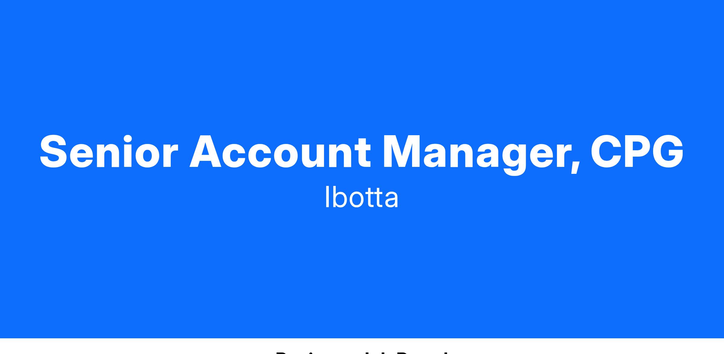 Ibotta is seeking a Senior Account Manager, CPG to join our innovative team and contribute to our mission to Make Every Purchase Rewarding.