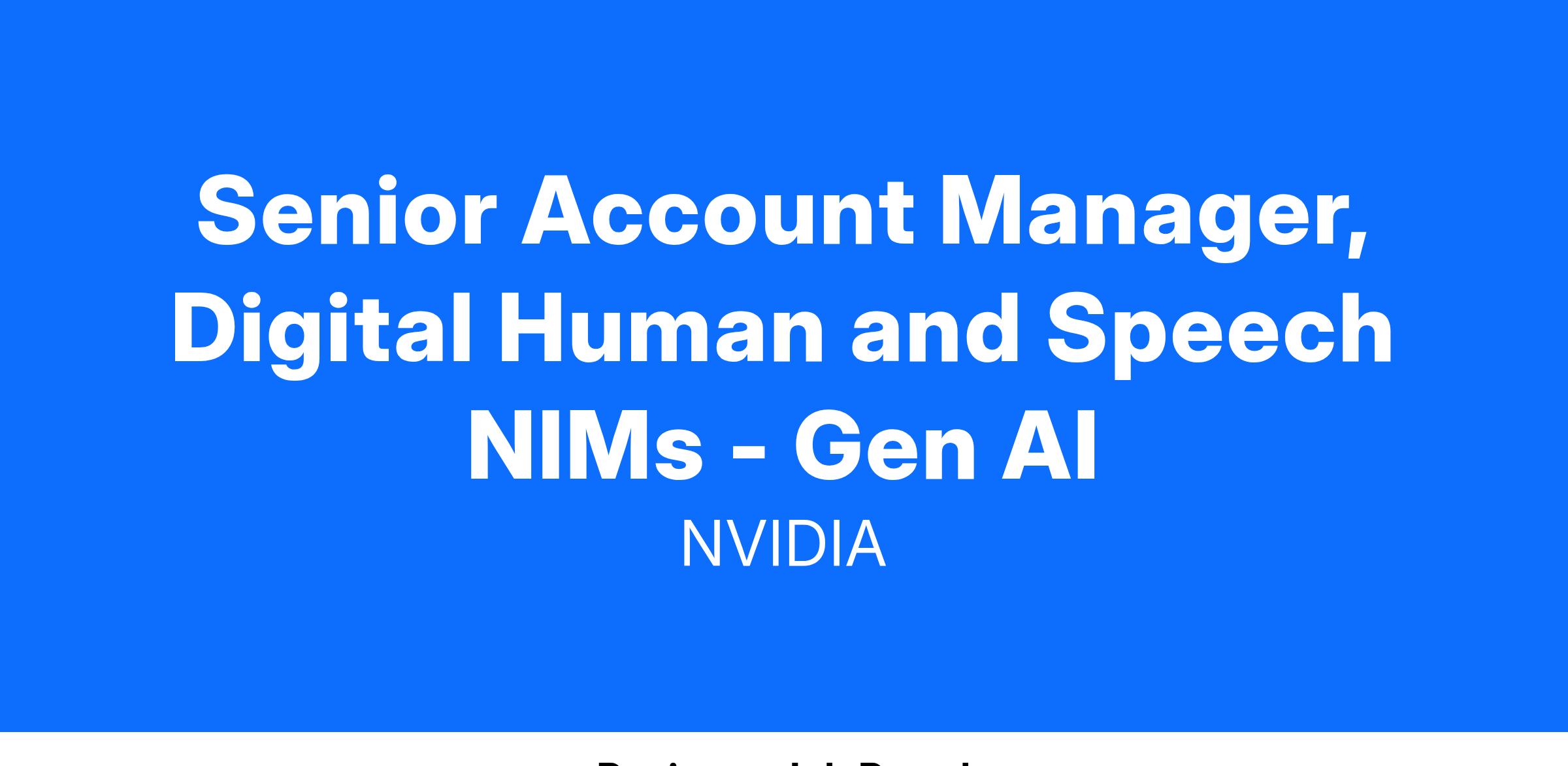 Drive the Enterprise business growth of NVIDIA’s Digital Human and Speech AI NIMs/Enterprise solutions. As a senior sales leader, you will have demonstrated experience in creating and driving business growth, working with lighthouse customers for new solutions, and achieving significant volume and scale. This person will be an overlay sales lead and work in virtual teams - including account managers, solution architects, sales operations, industry business development, product management, product marketing and marketing campaign teams.