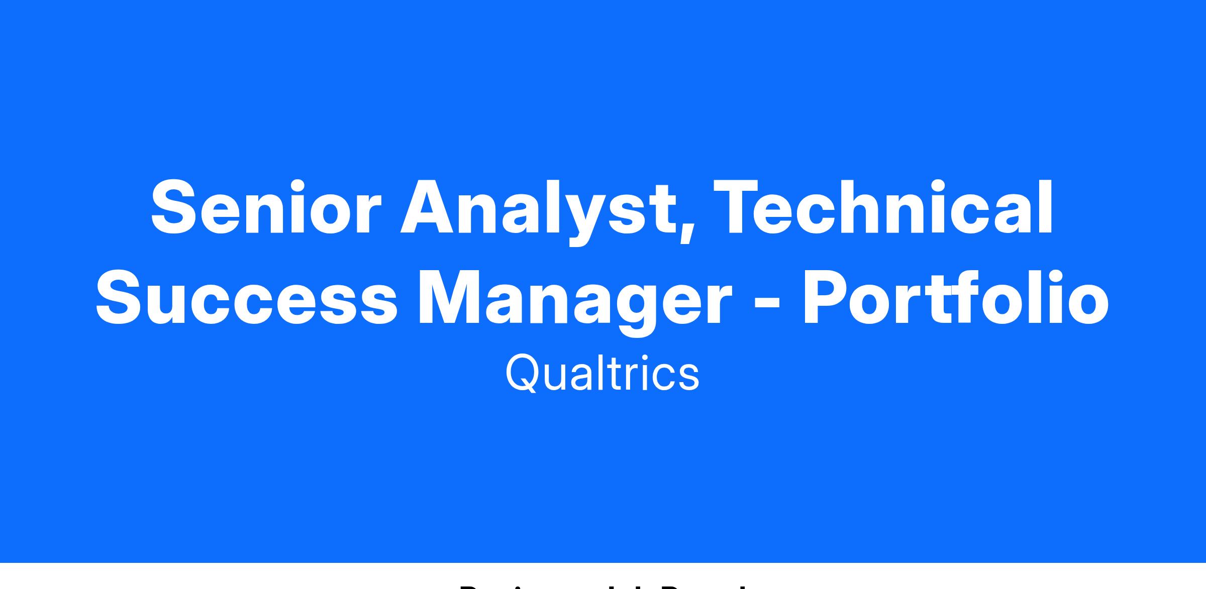 Senior Analyst, Technical Success Manager - Portfolio