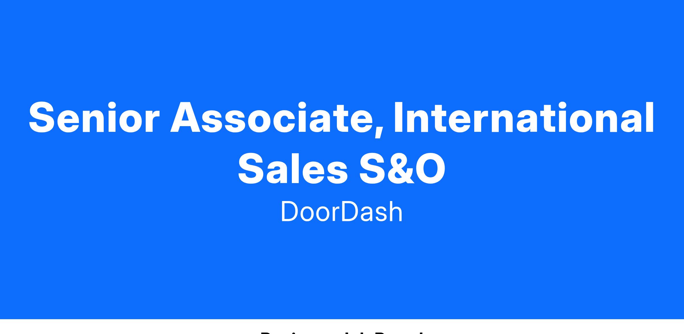 Our sales and partner management teams are the heart and soul of DoorDash, helping us partner with top merchants (think restaurants, grocers, convenience stores, retailers) across the country to grow their revenue and help them operate even better. As DoorDash grows both in scale and scope of offering, the strength of our sales engine and organizational structure must grow with it. The International Sales S&O team focuses on the acquisition, retention and growth of SMB restaurants across Canada, Australia and New Zealand.