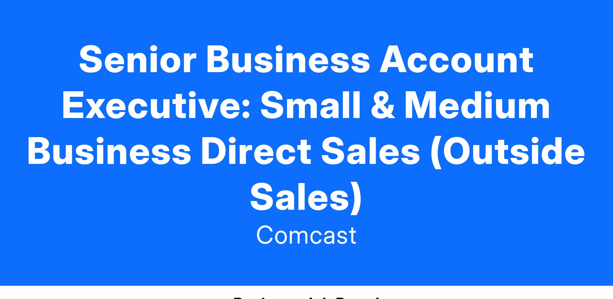 Sell Comcast Internet, Data, Video and Voice services to small and mid- size businesses focusing mainly on advanced communications solutions including PRI, Hosted PBX and multi-location opportunities. As part of sales process, create and deliver face-to-face sales presentations that demonstrate knowledge of the latest Comcast products and services. Promote the sale of bundled products to ensure the optimal solution for the customer. Sell with goal of exceeding departmental financial and unit targets. Stay abreast of competitive landscape and emerging technologies to best position Comcast Business Services in the marketplace.