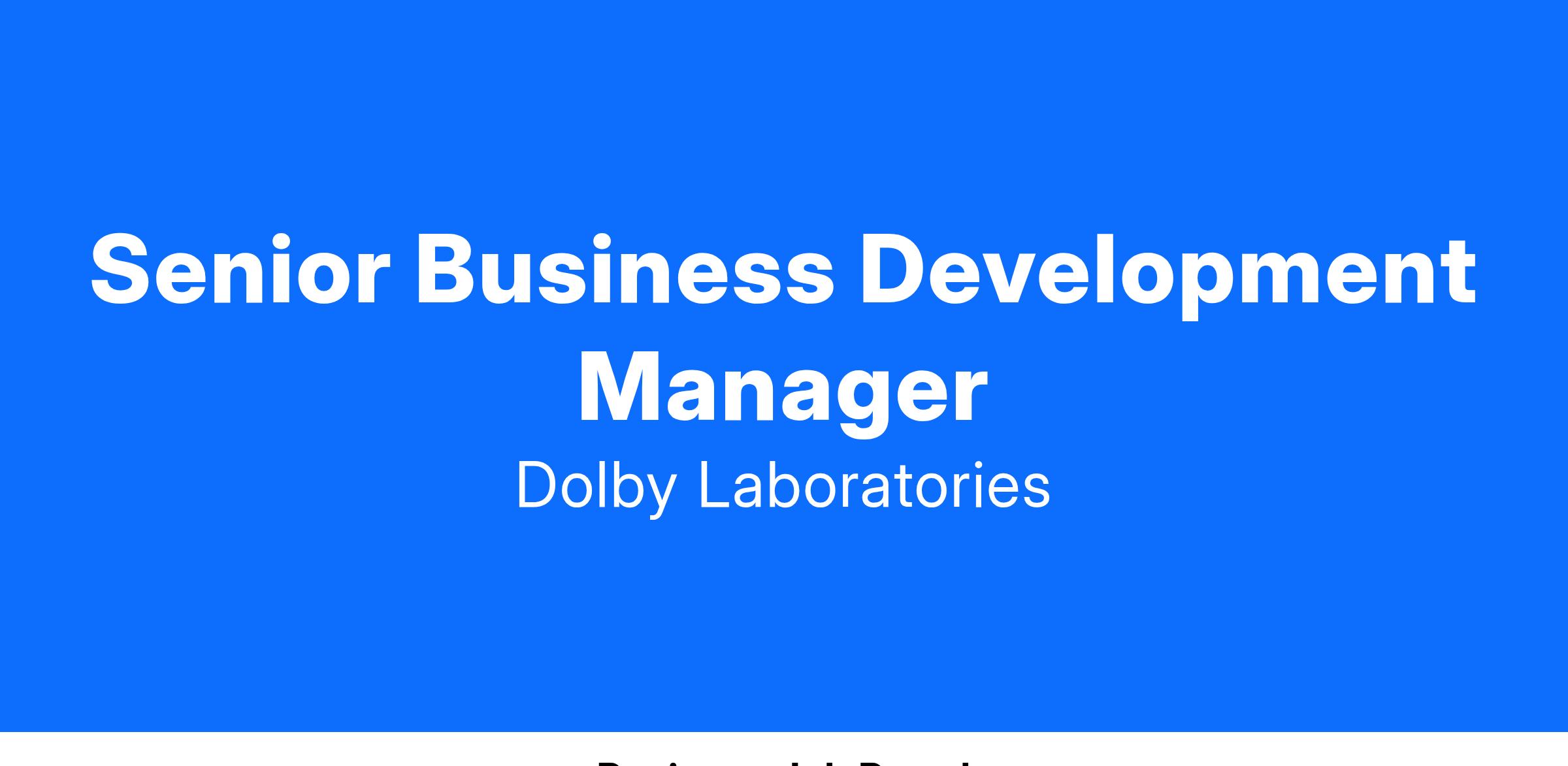 Dolby is proud to be an equal opportunity employer. Our success depends on the combined skills and talents of all our employees. We are committed to making employment decisions without regard to race, religious creed, color, age, sex, sexual orientation, gender identity, national origin, religion, marital status, family status, medical condition, disability, military service, pregnancy, childbirth and related medical conditions or any other classification protected by federal, state, and local laws and ordinances.