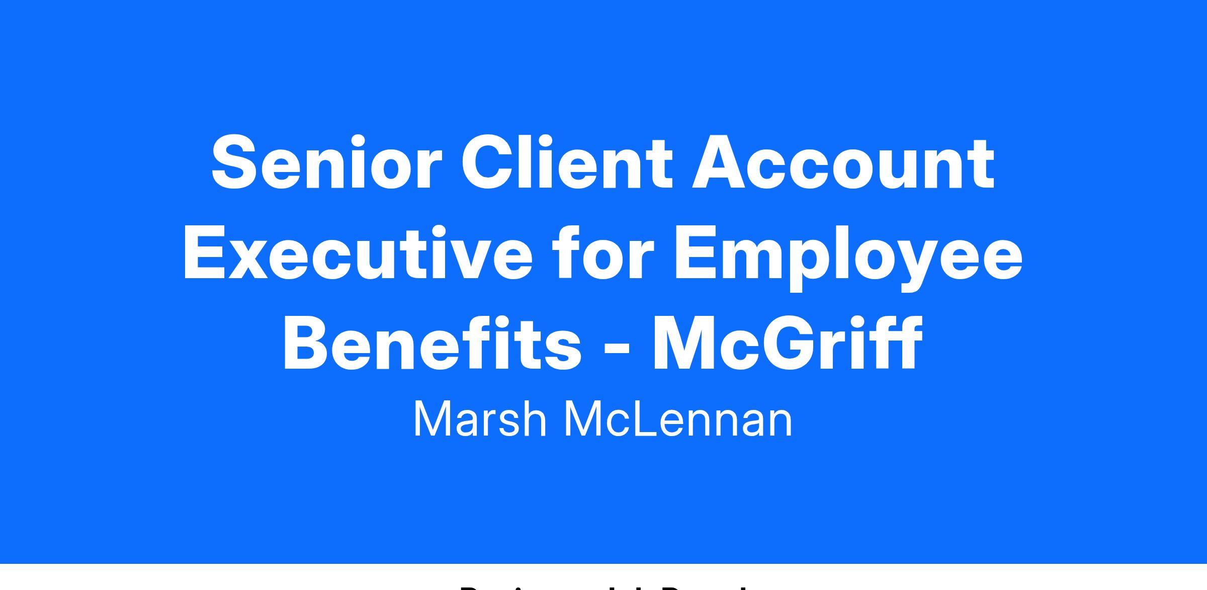 Award-winning, inclusive, Top Workplace culture doesn’t happen overnight. It’s a result of hard work by extraordinary people. More than 11,000 of the industry’s brightest talent drive our efforts to deliver purposeful work and meaningful impact every day. Learn more about what makes us different and how you can thrive as a Senior Client Account Executive at McGriff, a division of Marsh McLennan Agency (MMA).