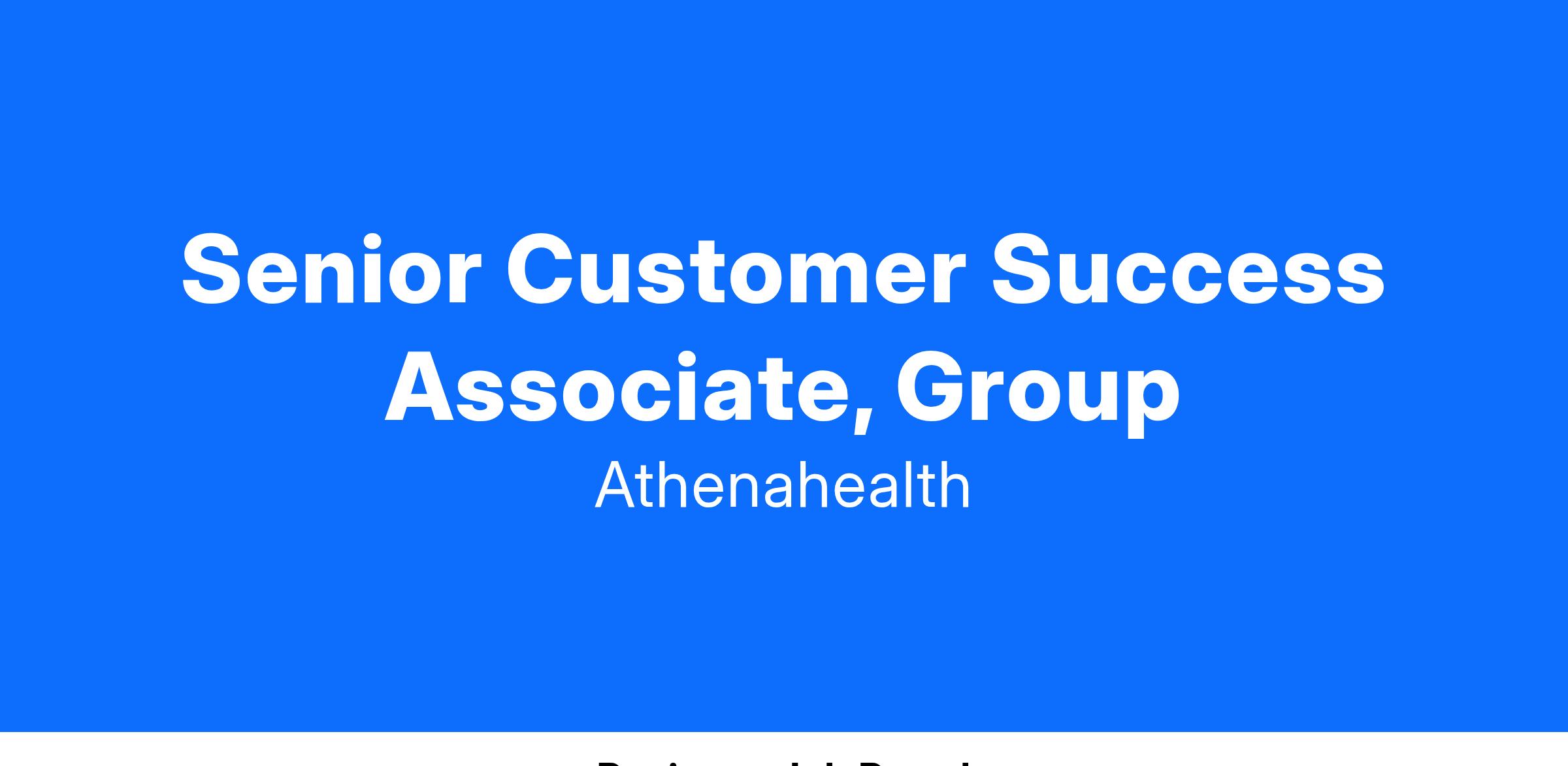 The Customer Success Organization is focused on helping athena’s medium sized customers derive the full value of their athena products and services. We build and manage effective relationships with customers owners, executives, operational and physician leadership stakeholders, communicating the value of our services in the context of customers’ business goals with the goal of retaining high performing, satisfied customers. We identify risks to customer satisfaction proactively and collaborate across the entire Customer Success organization to tenaciously pursue solutions and advocate for our customers. The Senior Customer Success Manager is charged with ensuring that both the customer and athena performs all the duties and responsibilities under each party’s purview in athena’s unique co-sourcing model.