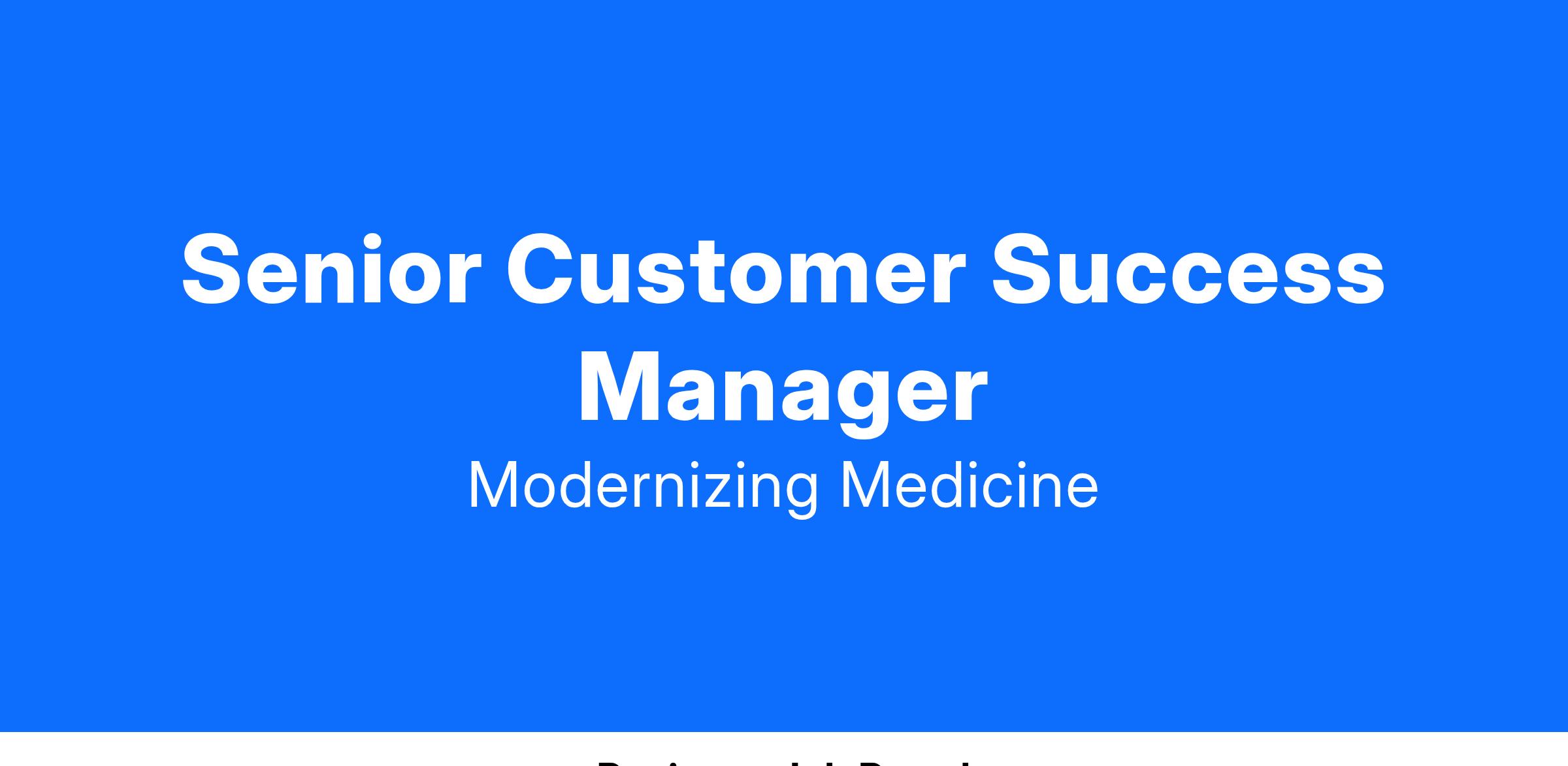 ModMed is hiring a driven Senior Customer Success Manager to join our positive, passionate, and high-performing Customer Success team focused on acting as the post-sale consultative partner and trusted advisor to our Orthopedic clients, and is responsible for the retention, expansion, and advocacy of an assigned book of business. This is an exciting opportunity to understand their customer’s business goals and advocate on their behalf by proactively identifying risk(s) and collaborating internally to deliver solutions within a fast-paced Healthcare IT company that is truly Modernizing Medicine!