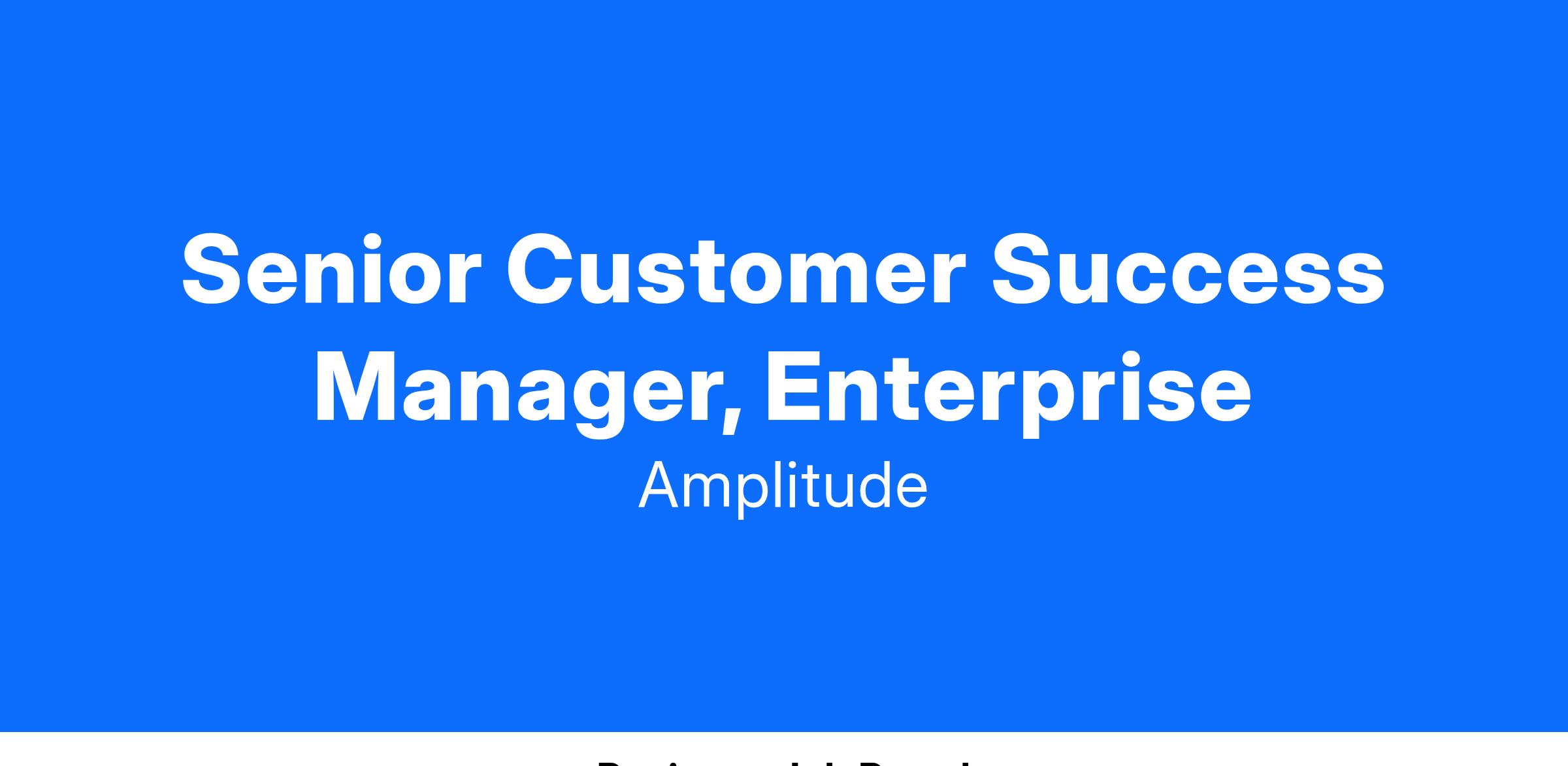 The Customer Success team is responsible for building relationships with and driving long-term value realization for Amplitude’s customers. As a Senior Customer Success Manager, Enterprise for our east region, you are responsible for making sure that our enterprise customers are successful in achieving their product goals. As a dedicated resource on a portfolio of Enterprise accounts in North America you will lead the process for understanding the most meaningful business challenges of the product executives you partner with. You will have the opportunity to work with both innovative digital-first brands and more traditional companies looking to embrace a data-driven future and have a significant impact on Amplitude’s Customer Success strategy.