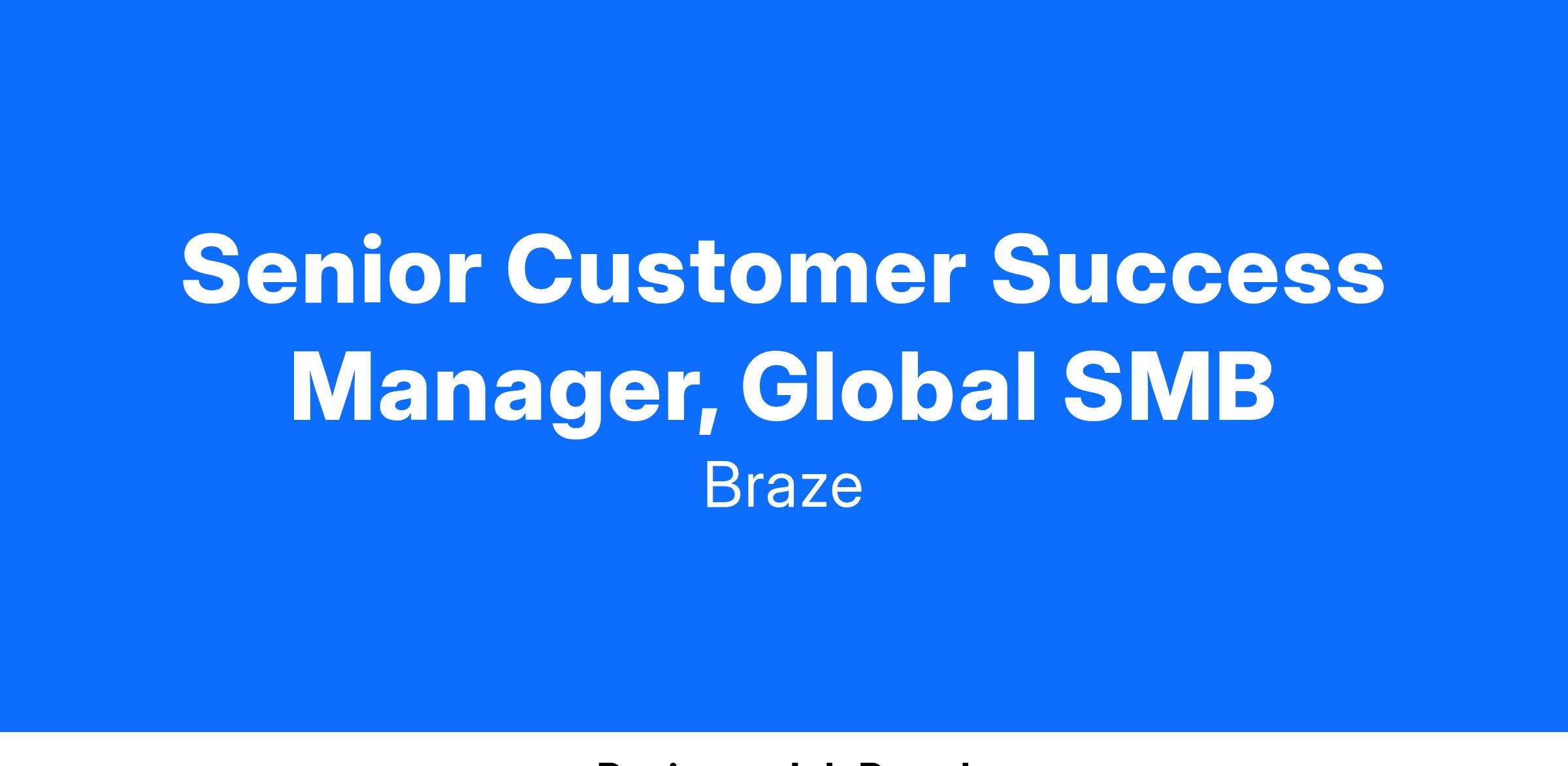 As a Customer Success Manager, you will work closely with agile, technology-focused brands to help them realize value from their investment in Braze. As part of an innovative and experimental team of Success Managers, you will have the opportunity to shape how we support our customers as we build a new strategy for the future.