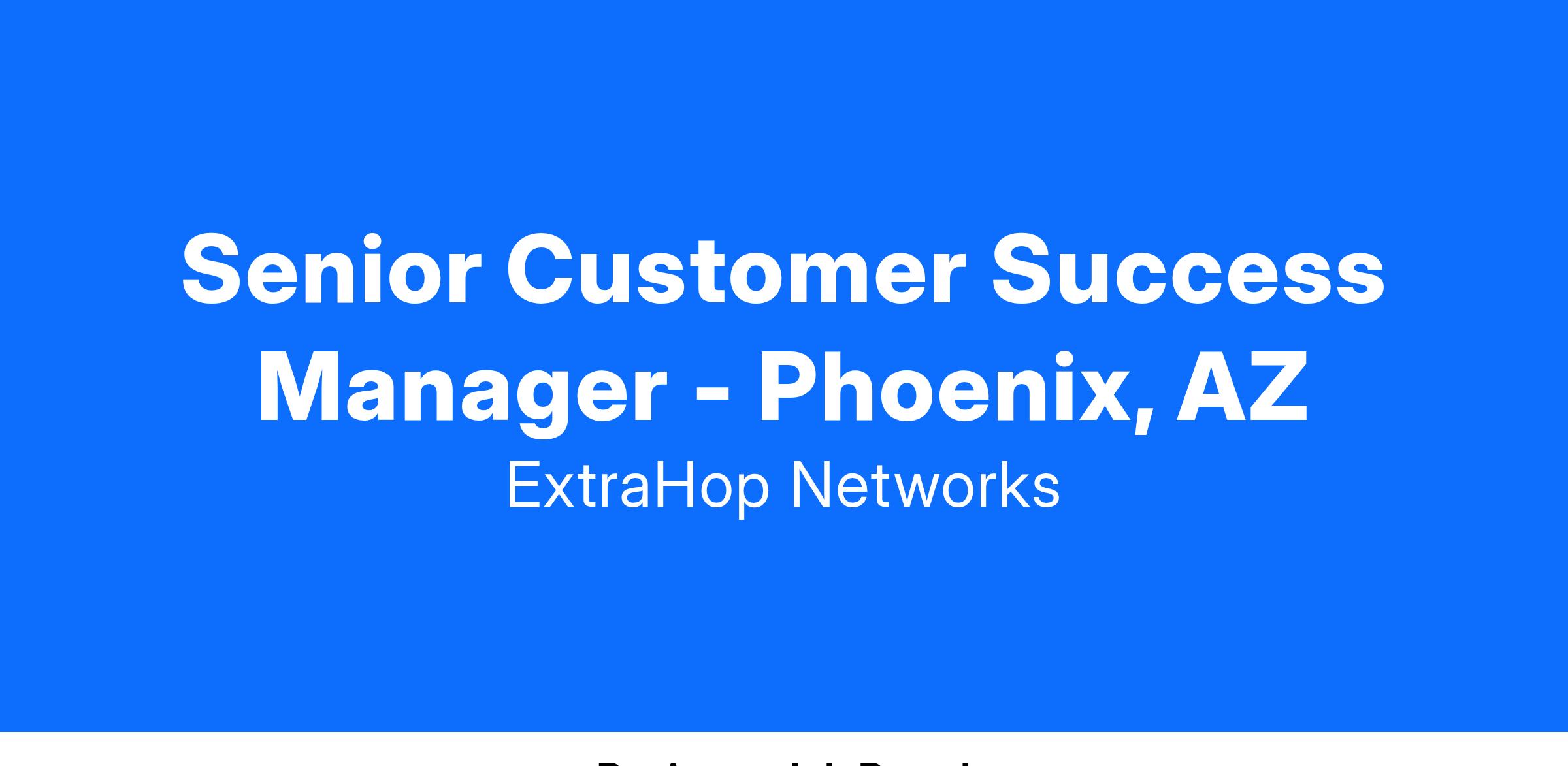 Do you want to work with a platform and technology where you can help customers solve critical business problems? Do you enjoy and excel at building lasting customer relationships? As a member of our Customer Success team, you’ll have the opportunity to unleash your expertise to wow customers and make a difference in an exciting, growing company. At ExtraHop, we provide solutions for mission-critical business and technology problems across a vast array of industries and technologies. With us, you’ll deliver solutions that customers previously thought infeasible or impossible to solve. Join us and you’ll find we have a supportive home team, great customers, and a product that customers love.