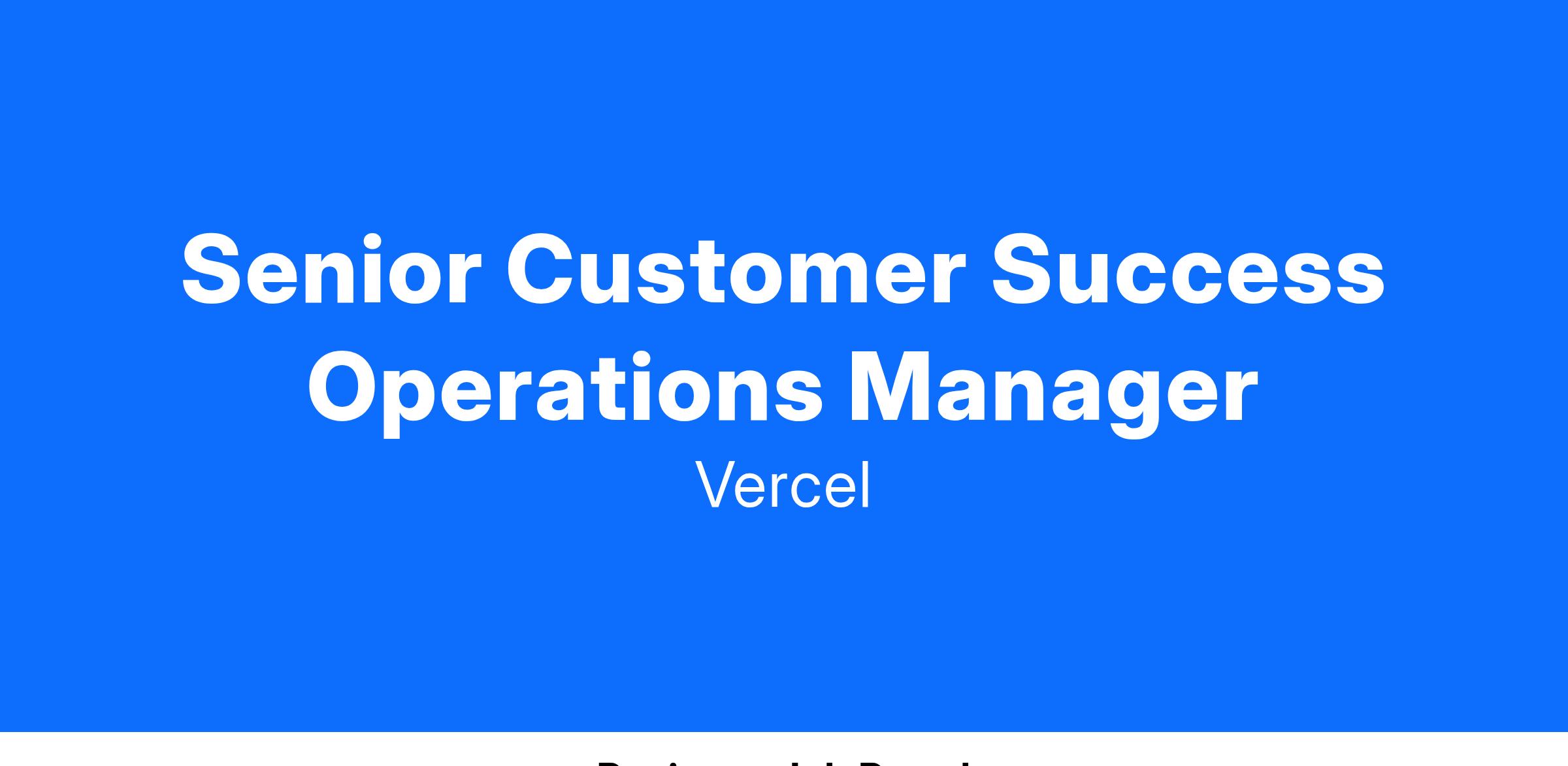Vercel is looking for an experienced Senior Customer Success Operations Manager to drive retention and expansion efforts with GTM leaders. In this high impact role, you will have the opportunity to shape how Customer Success will deliver a world class experience at scale.