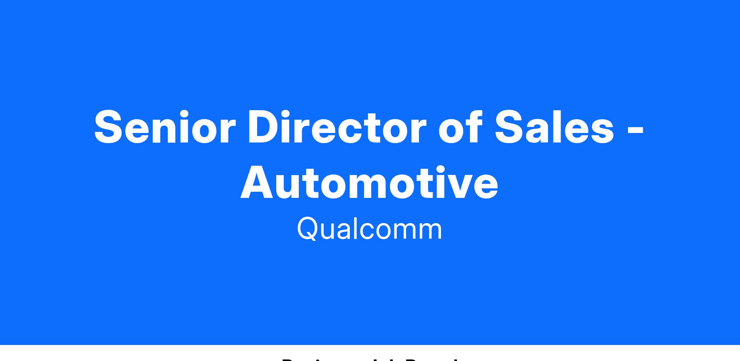 The successful candidate will be an energetic, motivated and proven sales and business development leader who will help drive success for Qualcomm’s rapidly growing Automotive Business.