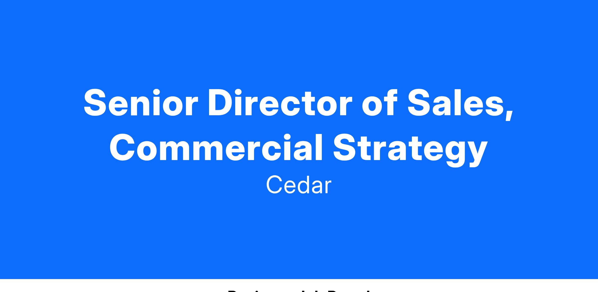 We are seeking a Senior Director of Sales to lead the New Verticals team to drive new business and exceed revenue targets. Our Senior Director of Sales’ primary focus will include targeting & signing enterprise DSO/OSO accounts to launch Cedar’s new solutions focused on treatment plans & payment plans for the dental and ortho segments. Specifically, this will include building relationships with relevant stakeholders, quarterbacking deal processes & executing against an enterprise sales account strategy.