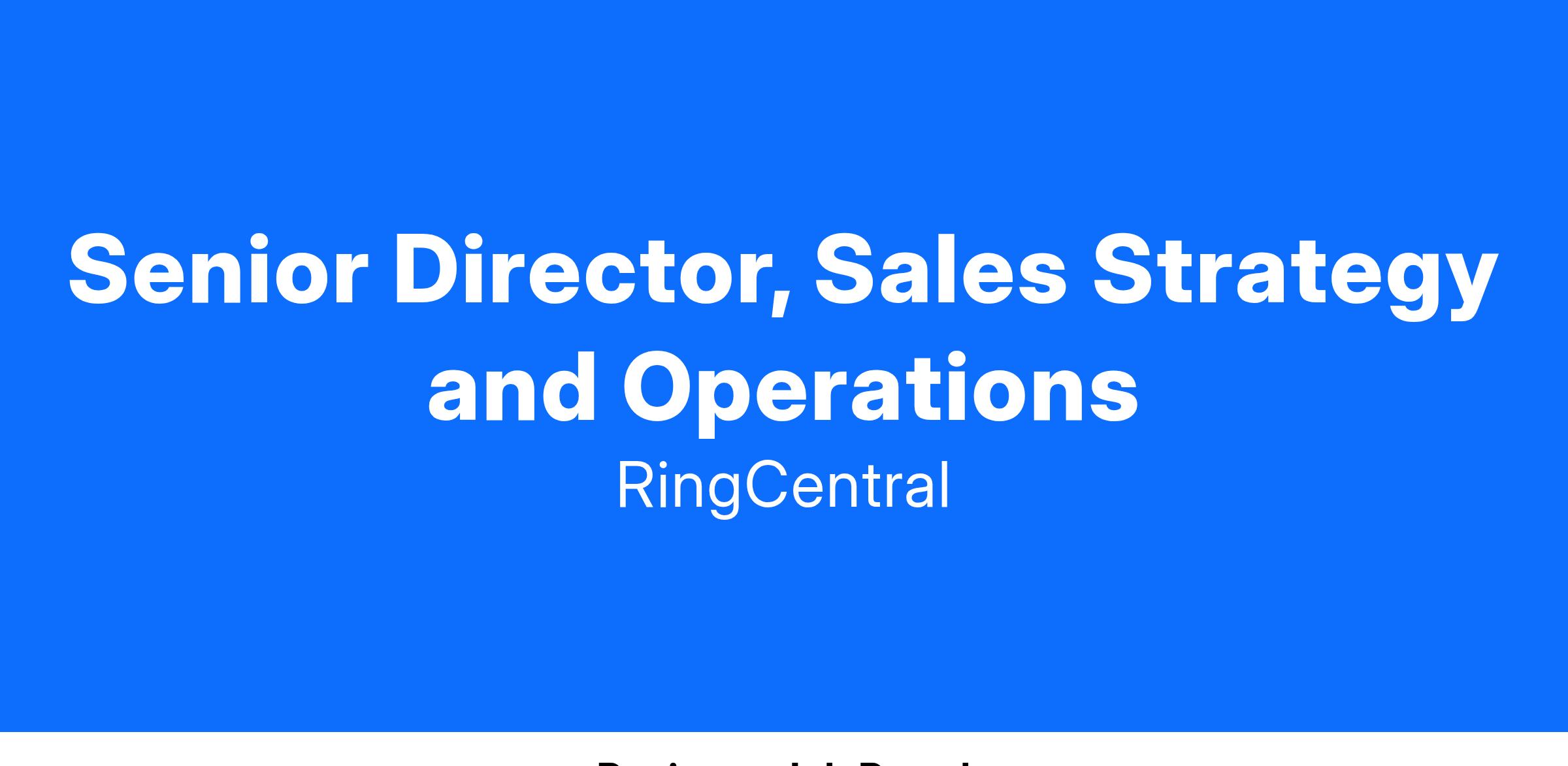 A Senior Director, Sales Strategy & Operations for the Global Strategic Partners. This person will be a key leader in driving the growth and productivity of sales globally. This role requires strong partnership across Sales, Sales Operations, Marketing Operations, Channel Operations, IT, and other cross-functional teams to deliver on a GTM strategy across channel and direct sales. You should have a proven ability to execute both strategically and tactically, and someone who is excited to do what it takes to make the company successful.
