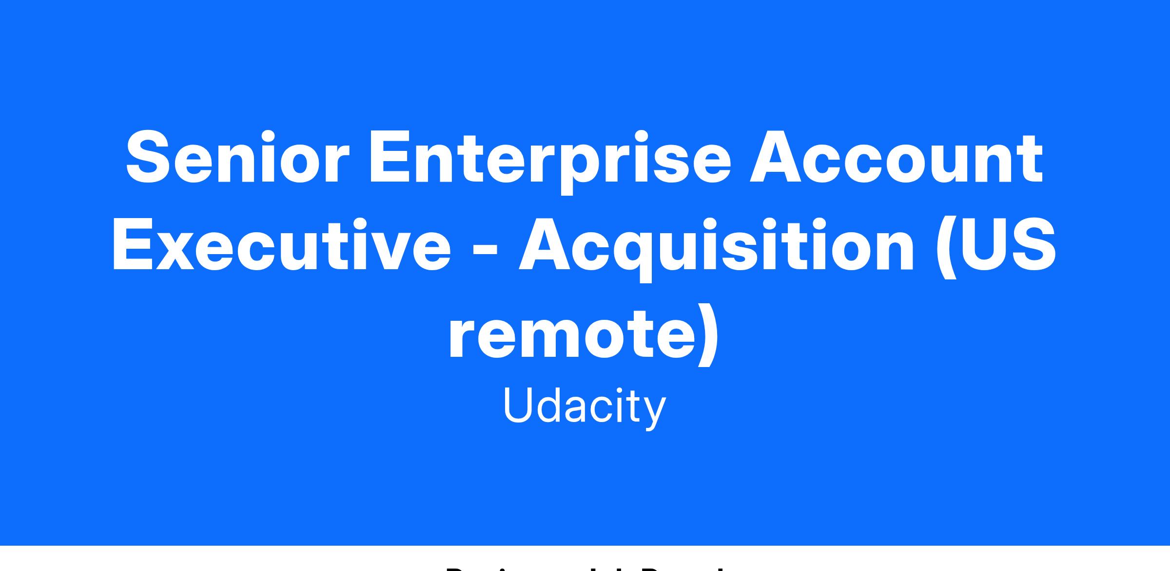 As a Sr. Enterprise Account Executive on our Acquisition team, you'll drive our rapidly growing enterprise business through new client acquisition in your assigned region. You will help leading companies empower their teams with training in the latest technologies that amplify their ability to deliver powerful new products and services on a global scale. We’re seeking a hungry seller with a proven track record selling to C-level executives at Global 2000/Fortune 1,000 companies. Udacity is a fast-paced start up where you will have a voice and the opportunity to grow your career. If you thrive in this type of environment, read on!