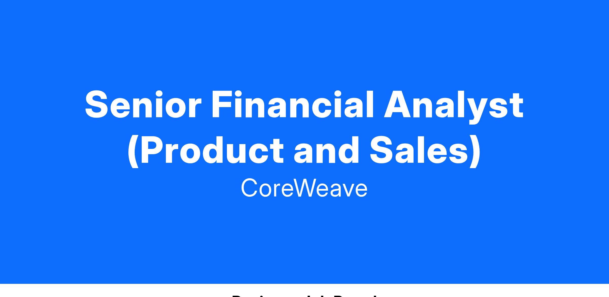 We are seeking a high-performing, self-sufficient Senior Financial Analyst to join our strategic finance team. The Senior Financial Analyst will support the Product and Sales finance lead, Head of FP&A, CFO, and CPO to support, analyze, and improve the core operational modeling and metrics used to run our business. This person will work cross-functionally with a variety of stakeholders at all levels of Coreweave and have frequent opportunities to interact with and support key executive level decision makers. Optimally, this person will have previous experience with building large, complex operational models, skills in data organization and automation, exceptional abilities in complex financial modeling and economic analysis, and exemplary written and verbal communication skills.