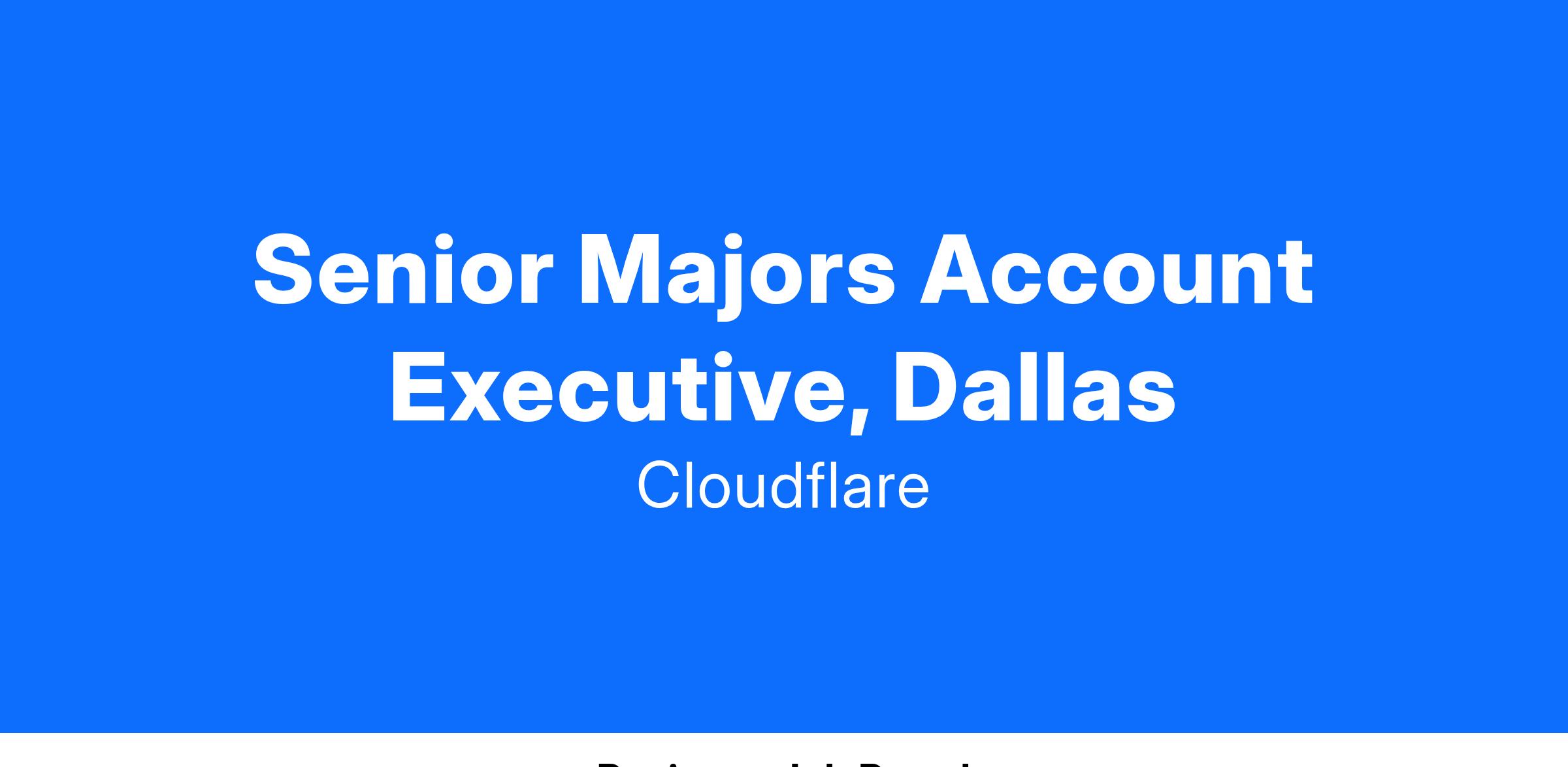 Cloudflare is looking for a highly motivated Senior Majors Account Executive seeking a role with the opportunity to help build a GTM working with the largest companies in North America. This position will manage a focused set of accounts with > 1B in annual revenues and the potential to do 10M ARR with Cloudflare. The Majors Account team will shape and lead Cloudflare’s Go To Market in the F100.