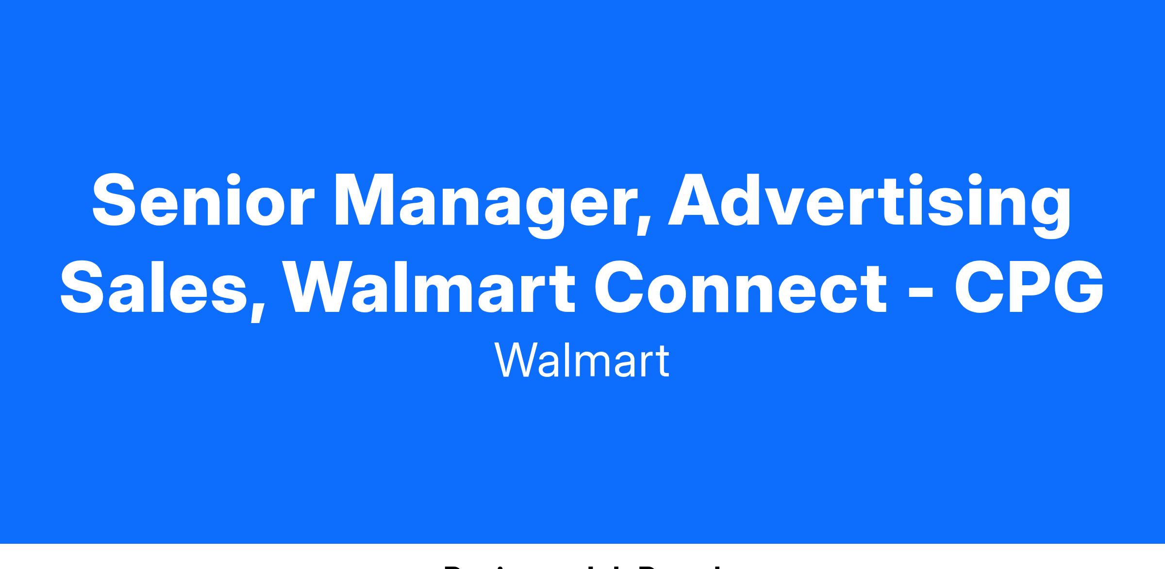 Walmart Connect’s Sales Leadership team is seeking an experienced Team Lead to help scale and grow Consumables supplier/advertiser partnerships to both Walmart Connect and Walmart. This seasoned sales executive will own the account strategy, execution and revenue growth from one key advertiser or a number of advertisers. We're excited to expand our Sales team across Enterprise CPG categories. If you are passionate about digital advertising and eager to make an impact within the largest company in the world, this opportunity is perfect for you!