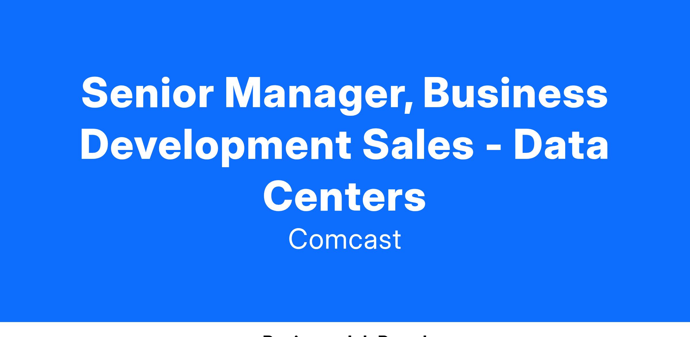We are seeking a dynamic and experienced Sr. Manager to lead a newly launched team focused on driving incremental revenue growth within the Data Center (DC) ecosystem. As the Sales Manager for this vertical, you will be responsible for building and leading a high-performing sales development team, creating and executing sales strategies, and fostering collaborative relationships with key stakeholders to maximize opportunities within the Comcast West Division footprint. This role is pivotal in shaping the future of our Data Center business and driving sustained growth. Please note this role will support Comcast Business and our West Division with 25-50% travel required.