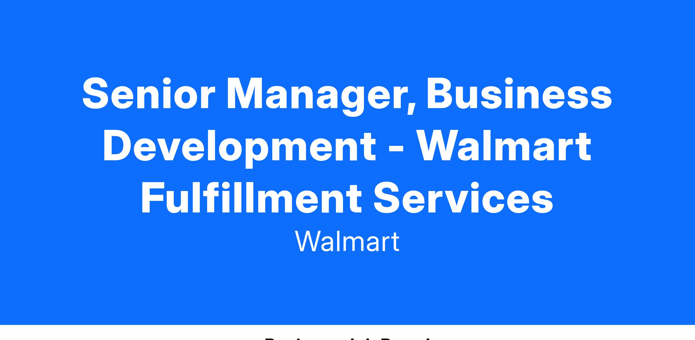 Senior Manager, Business Development, Walmart Fulfillment Services