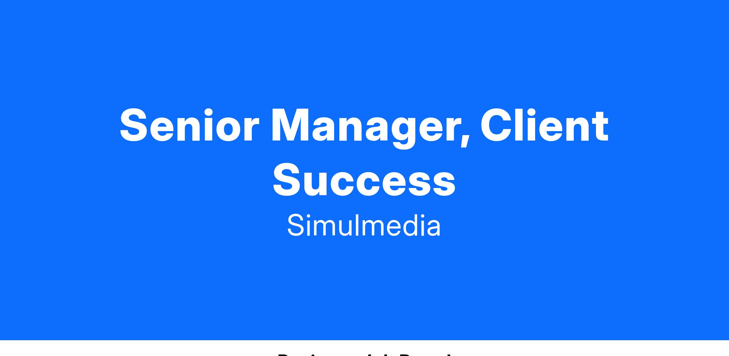 As an Senior Manager, Client Success - New Business Media Strategy at Simulmedia, you will play a pivotal role in ensuring the success of our clients, while also taking the lead in developing and executing media strategies to drive new business growth. Your ability to understand client needs, offer tailored solutions, and devise innovative strategies will be key to your success in this position.