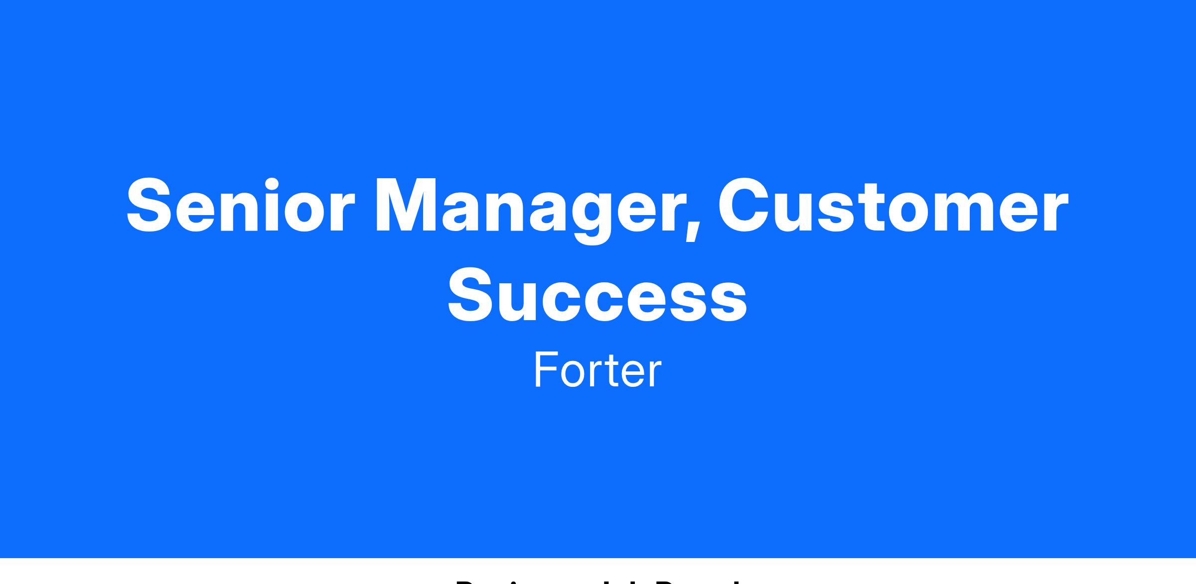 The Customer Success (CS) department is the backbone of everything Forter does, and as Sr. Manager of CS you’ll lead a team responsible for many of our most strategic customers. Forter’s technology is cutting edge, and as such, the CS team is in an exciting position to partner with customers to deliver incredible business value. Forter places a great deal of faith in our CS team, who are responsible not only for customer satisfaction, but also renewals and expansion discovery. In this role you’ll lead a world class team, ensure the execution of our mission at the highest levels, build lasting relationships with client executives, solve complex business challenges, and expand the skills that will be the cornerstone of your career.