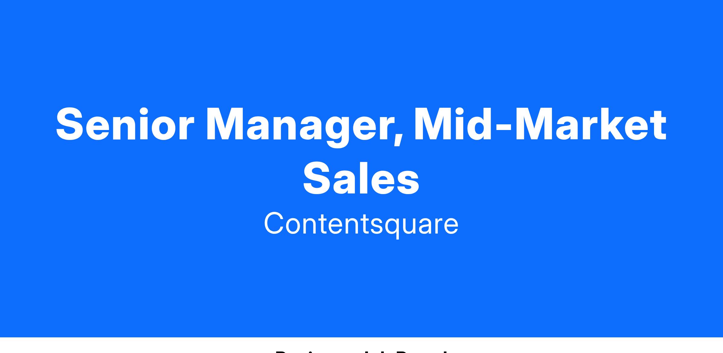 As a Senior Manager of Sales you will enable the success of our existing Account Executives supporting an inbound and outbound sales motion and play a major part in building the future of the sales team. We’ve witnessed rapid growth in our customer base and a huge part of this is due to a team of highly successful and ambitious Account Executives. We are looking for someone to lead the most successful segment of our sales org while working with the rest of our sales leadership team to accelerate growth.