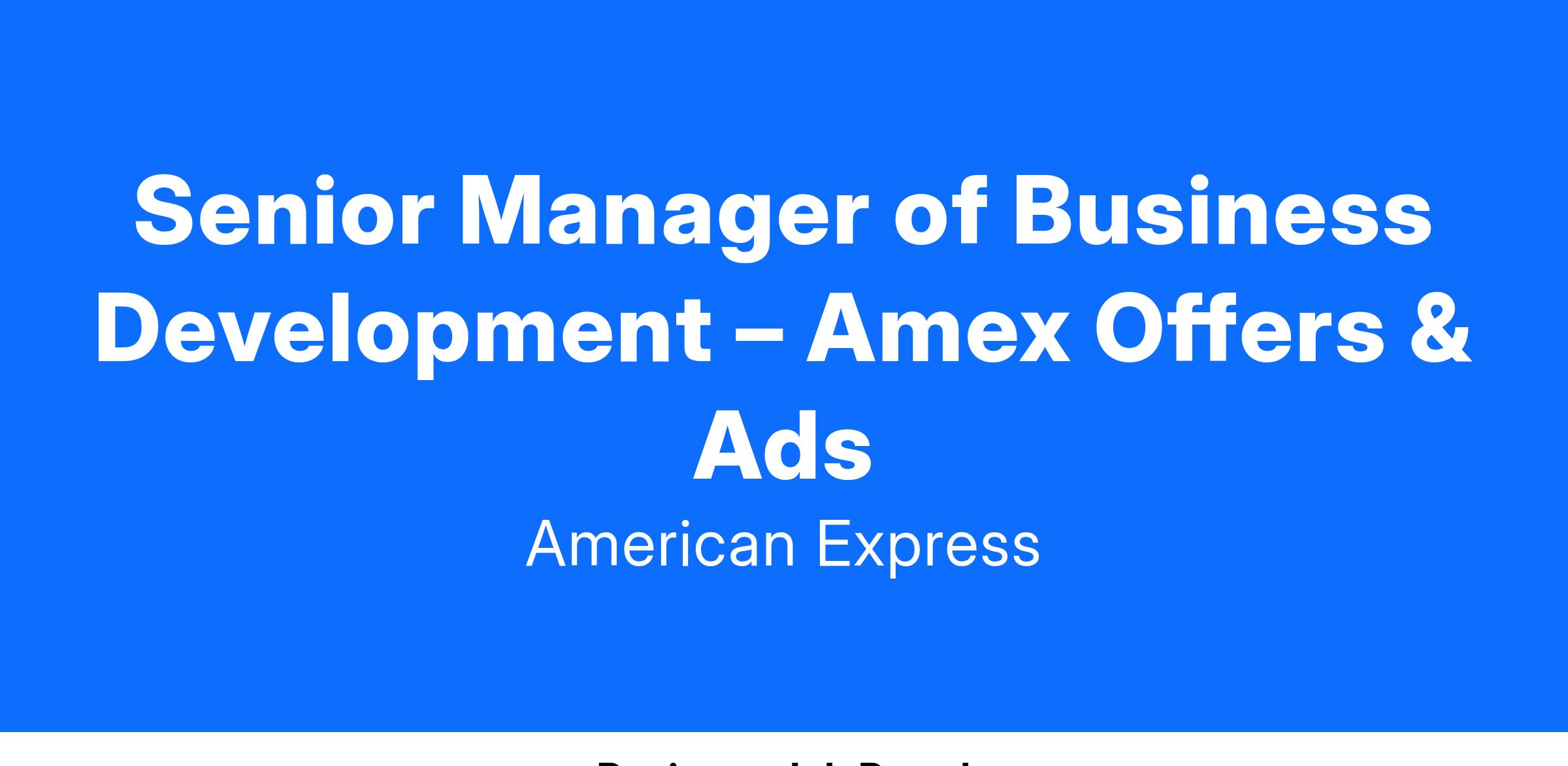 As the Senior Manager of Business Development – Amex Offers & Ads , you will be responsible for effectively managing and building a pipeline of new and lapsed advertisers into the Amex Offers program that will deliver unique value to Card Members and profitable growth for American Express. This role involves building strong client and agency relationships, delivering against goals that drive offer volume and increased campaign investment, and ensuring the successful E2E delivery of campaigns. The ideal candidate will have a proven track record in sales, negotiations, closing skills – all in a fast paced and dynamic environment - and have an unwavering will to win.