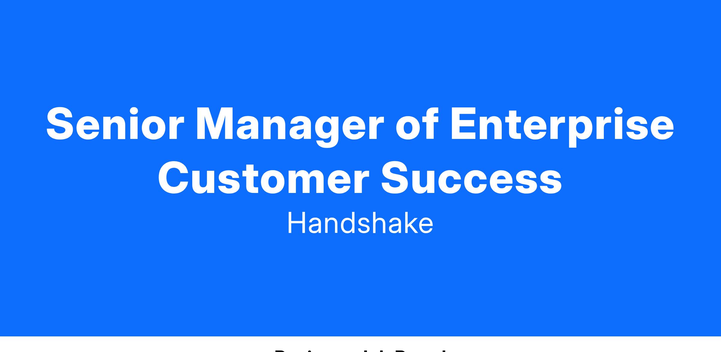 We’re looking for a Manager of Enterprise Success to join our Employer Sales Team - working with top employers across the nation to drive their early talent recruiting strategy. You will serve as a leader for the Enterprise Segment of existing partnerships, reporting to the Senior Director of Customer Success. You’ll work closely with the team to ensure they achieve their goals, build relationships with executives, and drive customer retention and expansion from onboarding through renewal.