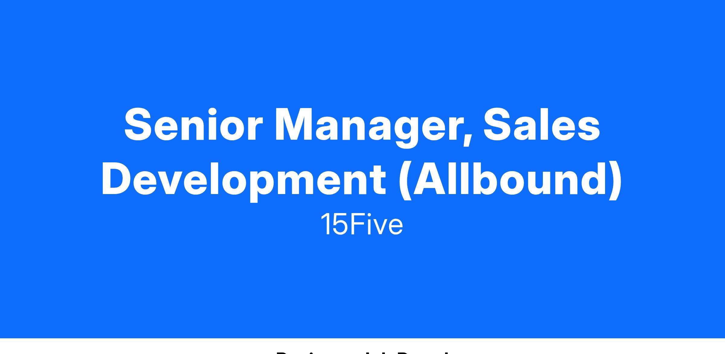 The Senior Manager of Sales Development (Allbound) is an energetic, data-driven leader who focuses on driving high pipeline performance, strong rep engagement, and ultimately revenue growth. Allbound is a group of sales development reps working both outbound and inbound. This function is a critical part of our Revenue Organization as it exists to build closable pipeline so the company can grow and accomplish our mission.