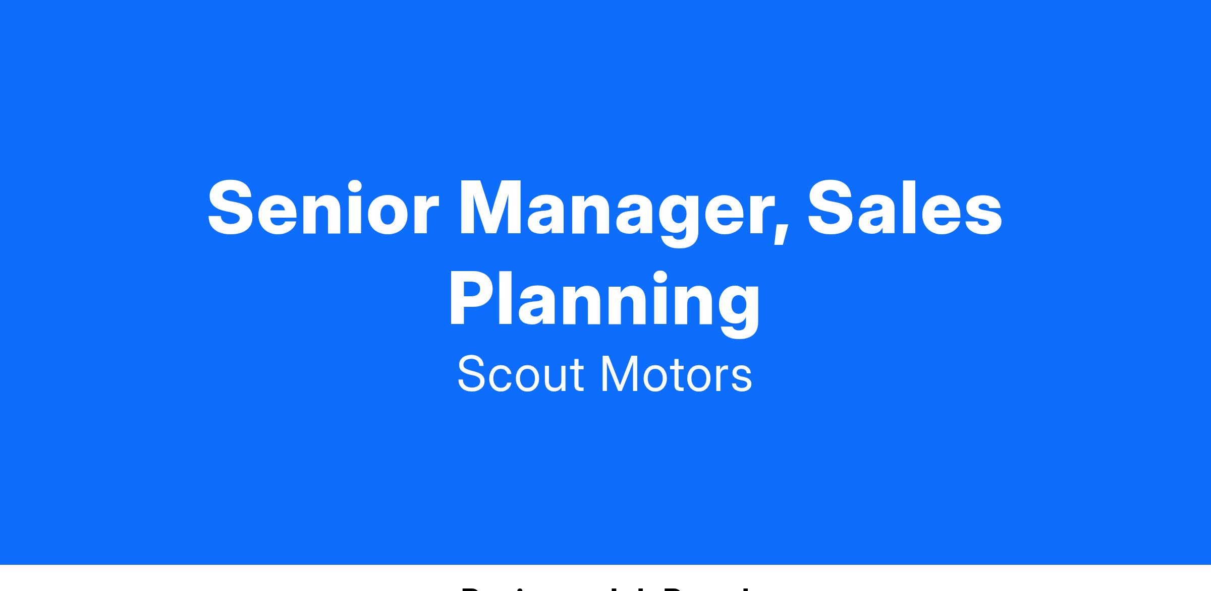 - Define the Scout Motors short-term sales planning process, bringing together key stakeholders to align timelines, systems, business objectives, and customer requirements.