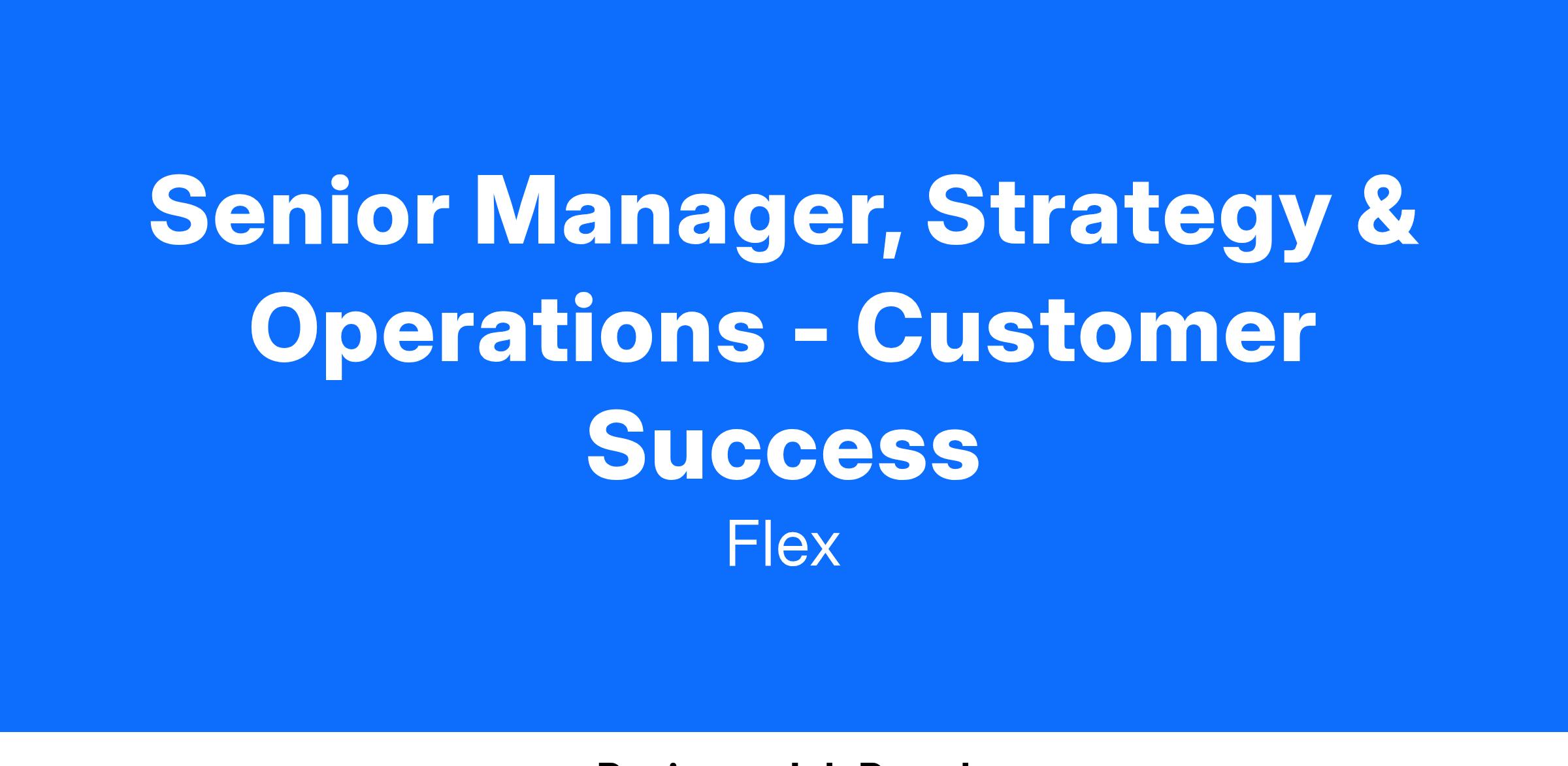 As the Strategy & Operations lead deployed to our Customer Success organization, you’ll help drive the transformation of Flex’s customer-facing support strategy, processes, and technologies. You will work in close partnership with our VP of Customer Success—as well as colleagues in Product, Analytics, and Consumer Protection—to ensure we’re executing with urgency against our roadmap and constantly raising the bar for the customer experience. You’ll be joining a winning team with an incredible culture and commitment to our customers. Successful Strategy & Operations team members will have the opportunity to rotate into other departments or special projects after their first year.