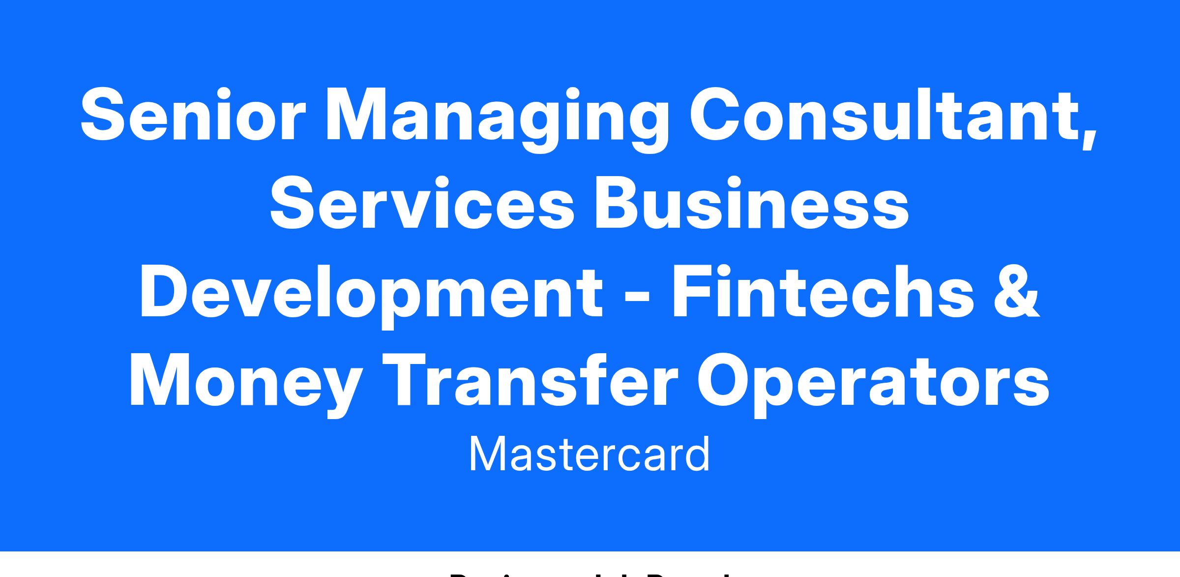 Senior Managing Consultant, Services Business Development - Fintechs & Money Transfer Operators
