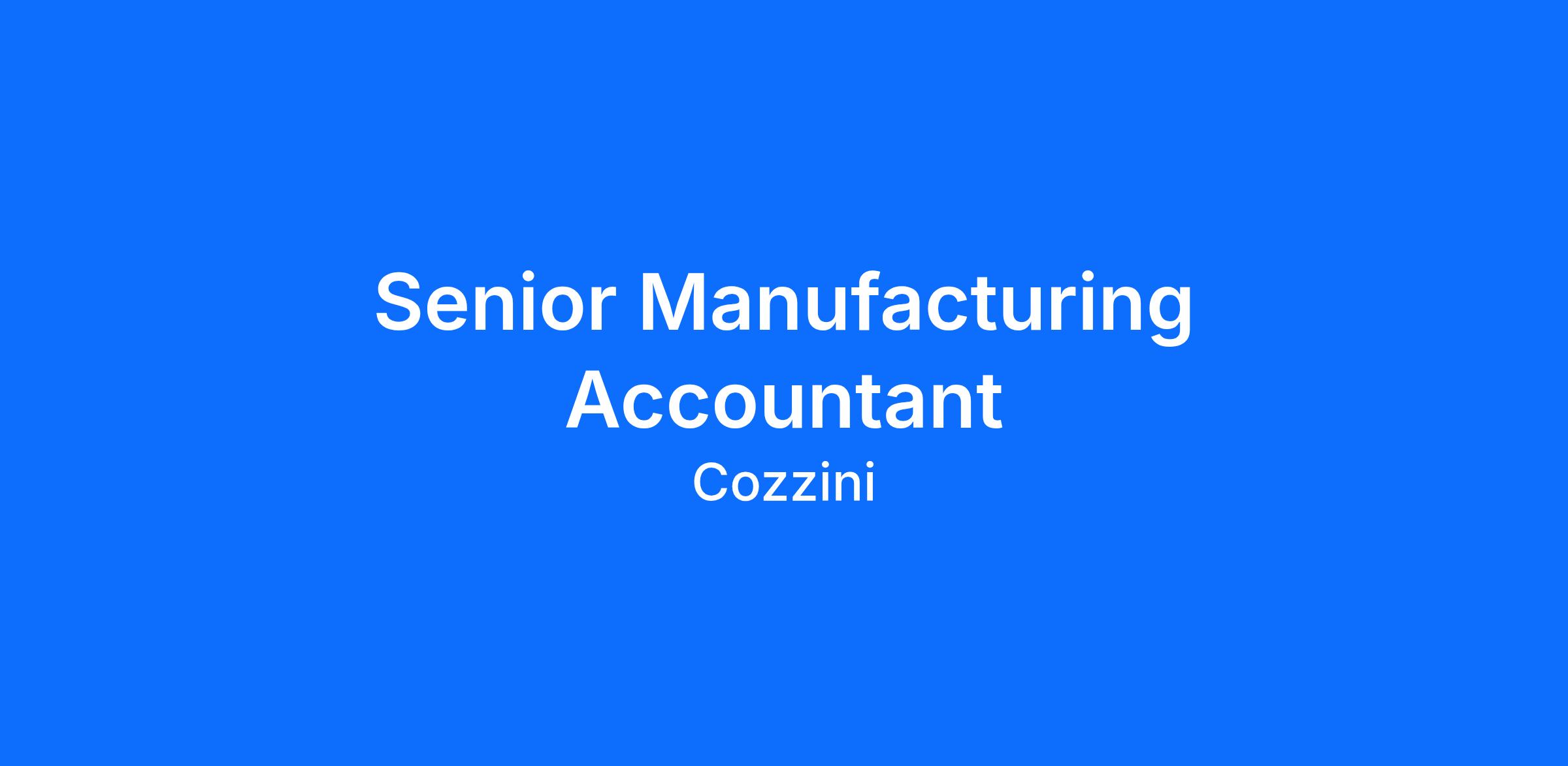 Cozzini has a great opportunity for a Senior Manufacturing Accountant to join our Accounting/Finance Team!