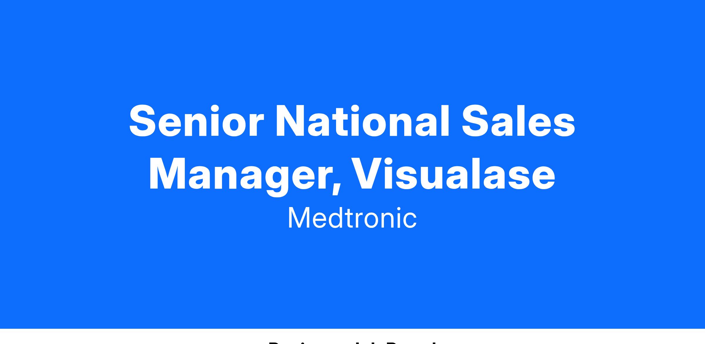 At Medtronic, the National Sales Manager, Visualase manages the achievement of unit and revenue goals for assigned therapy products for the nation. This role assists the nation in achieving overall assigned therapy product sales and marketing objectives. The Neuromodulation Operating Unit seeks candidates who will meet our customer expectations by striving without reserve for the greatest possible reliability and quality in our products, processes and systems by being accountable, having a voice, and taking action. Performs all duties in compliance with Quality System.